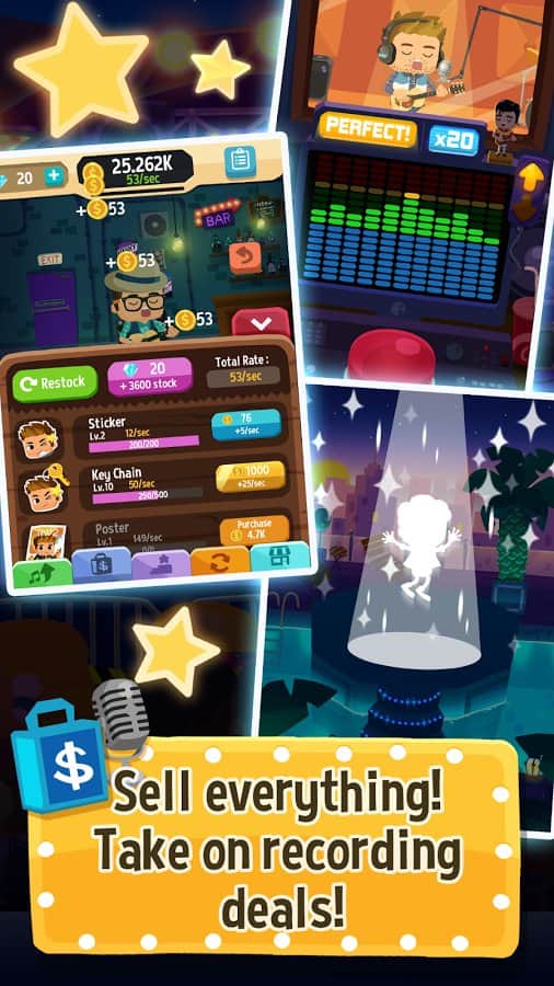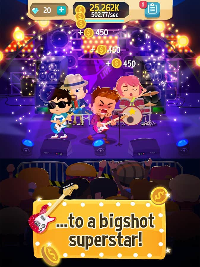 Beat Bop: Pop Star Clicker - eğer çocukluğunuzdan beri sahne yıldızı olmayı hayal ediyorsanız, bu oyun sizi tanınmış bir müzisyen olma yolunda destekleyecek. Ün, ona hemen gelmedi. Kariyerinin başında, talepkar olmayan bir izleyici için performans sergilemek zorunda kalacak ve yavaş yavaş fanatiklerle dolu stadyumlara kadar yükselebilecektir. Oyun bir tıklayıcıdır, ne kadar sık ve uzun tıklarsanız, o kadar çok paraya sahip olursunuz. Müzik yeteneklerinizi geliştirin, kendinize hayran kalabalıkları oluşturun ve sonunda milyonere dönüşün. Müzik grubunuza yeni üyeler işe alın, yaratıcılığınızın yönünü seçin ve başarıya doğru ilerleyin.