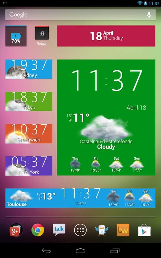 Güzel Widget'lar Android'de, LevelUp Studio'dan hava durumu, saat ve diğer gerekli veriler için harika widget'lardır. Bu widget'lar ve takvimli büyük hava durumu ve saat widget'ı ile masaüstünüzü dönüştürebilirsiniz. Çok sayıda ayar ve skin değiştirme imkanı mevcuttur.