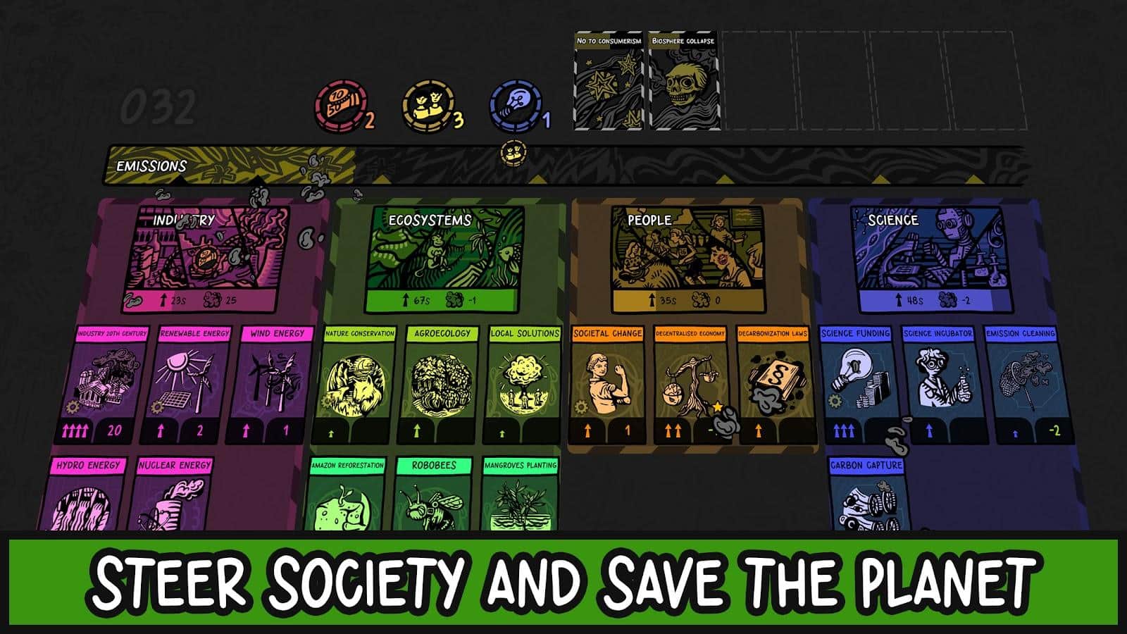 Beecarbonize, gezegenimizi kurtarmak için ne gerektiğini anlamanıza yardımcı olacak benzersiz bir kart strateji oyunudur. İklim değişikliği ile karşılaşacak ve bu olgu ile mücadele etmek için ileri teknolojileri kullanmanız gerekecek. Ekosistemleri korumak ve sanayiyi modernize ederek karbon salınımını azaltmak için çeşitli stratejileri keşfedeceksiniz. Enerji, sosyal reformlar, çevre politikası ve bilimsel girişimler arasında denge kurarak toplumu ve sanayiyi yönetin.
