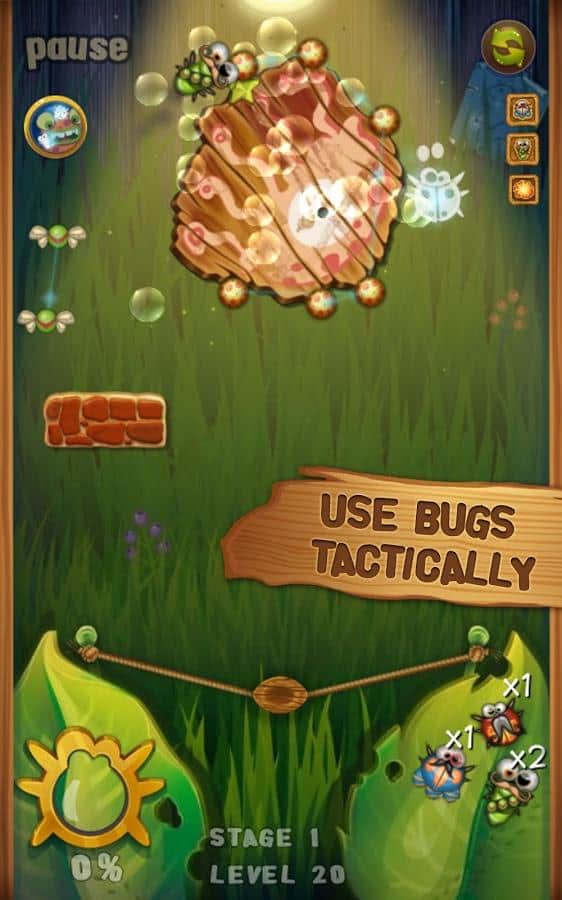 Böcek Kırıcı - Android için bir oyun, burada mancınıkla böcekleri fırlatmanız gerekiyor, büyük nesneleri yok etmek için. Hedefe tam isabet edin ve parmağınızla ekrana dokunarak patlamalarını sağlayın. Her böceğin kendine özgü yetenekleri var, bu yüzden tam yok etme için bir kombo darbesi gerçekleştirebileceğiniz bir taktik geliştirebilirsiniz.