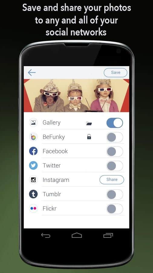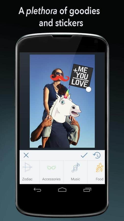 BeFunky Foto Editörü Pro - Bu uygulama ile fotoğraflarınızla her şeyi yapabilirsiniz, sıradan ışık efektleri eklemekten başlayarak, tek boynuzlu at kafasına kadar. Güzel fotoğraf çerçeveleri, süper kahramanların bir sürü yüzü, birçok çıkartma. Ayrıca, istediğiniz zaman fotoğrafınızı arkadaşlarınızla paylaşabilirsiniz. Bu uygulama ile fotoğraflarınızı düzenleme alanında tam bir özgürlük elde edersiniz. Oynayarak deneyin.