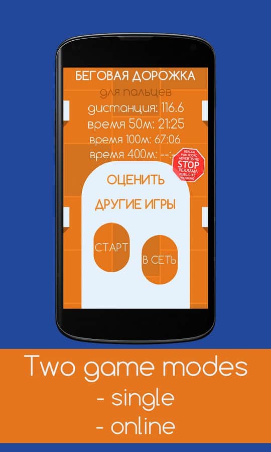 Parmaklar için engelli koşu – parmaklarınızı eğitmek için bir zaman öldürücü, Android için. Bu oyunda koşu yaparken parmaklarınızı kullanmanız gerekecek. Antrenmanınıza hemen başlayın ve size uygun olan modu ve mesafeyi ayarlayın. Oyunda, 50 metrelik güç koşularıyla, engelleri aşarak 100 metrelik ve 400 metrelik mesafeler gibi birkaç farklı mesafe bulunmaktadır, ayrıca bayrak koşuları da mevcuttur. Parmaklarınızı ve tepki hızınızı eğiterek uzun yarışlar düzenleyin ve arkadaşlarınızla kendi rekorlarınızı belirleyin. Neler yapabileceğinizi gösterin, parmaklarınız da dahil olmak üzere tüm mesafeleri aşarak engelleri atlatın.