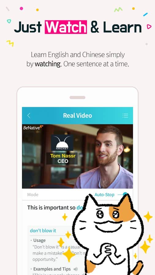 BeNative: Pro Konuşmacıları İzleyin - Birçok insanı bir araya getiren harika bir uygulama. Bu uygulama sayesinde herhangi bir dili, belirli videoları izleyerek öğrenebilirsiniz. Temel olarak, ne izleyeceğinizi ve hangi dilde izleyeceğinizi kendiniz seçersiniz, ardından videoyu izlerken aşağıda metnin doğru okunuşunu ve çevirisini okuyabilirsiniz.