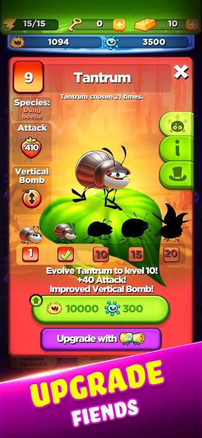 Best Fiends – bu inanılmaz ilginç bulmaca macera oyununda Minyatürler dünyasını ve sevimli sakinlerini keşfet. Tüm minik sakinler bir arada barış içinde yaşıyorlardı - ta ki bir gece Gök Gürültüsü Dağı'na bir meteor çarpana kadar. Garip bir güç, tüm barışçıl sümüklü böcekleri, yeşillikleri yiyen bir çete haline dönüştürdü. Tüm Harika böcekleri topla, özel güçlerini aç ve Gök Gürültüsü Dağı'nın sümüklü böcekleriyle savaş. Kaygan bir maceraya hazırlıklı ol!