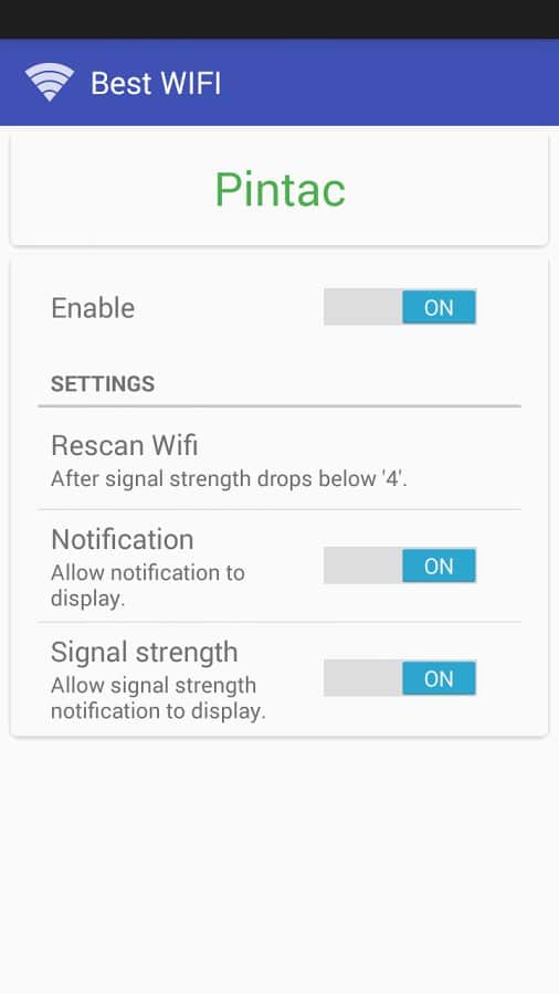 En İyi WIFI – Pintac geliştiricisinden Wi-Fi noktaları arasında hızlı geçiş yapmak için son derece kullanışlı ve doğru bir uygulama. Program, evde veya işte birden fazla Wi-Fi noktası veya Wi-Fi Extender bulunan kullanıcılar için tasarlanmıştır ve sinyal seviyesine bağlı olarak erişim noktaları arasında otomatik geçiş yapmayı sağlar. Ayarlarda geçiş için sinyal eşiği düzeyi belirlenebilir. En İyi WIFI'yi cihazınıza indirin ve yükleyin ve daima bağlantıda kalın. Keyifli kullanımlar!