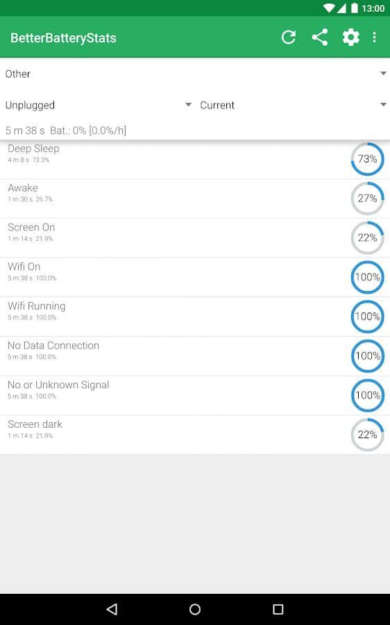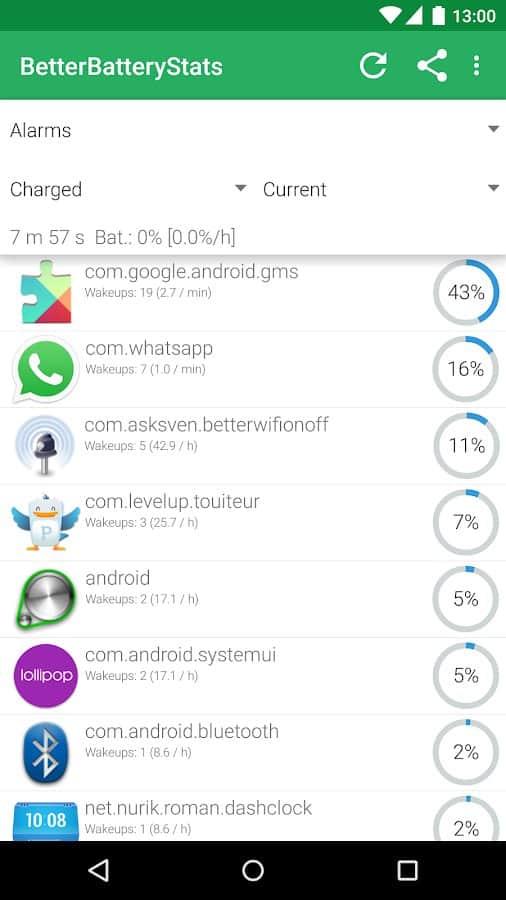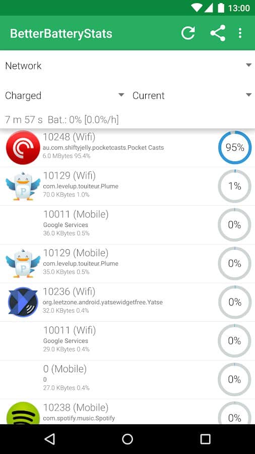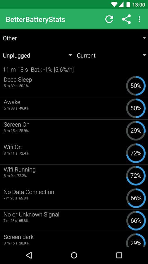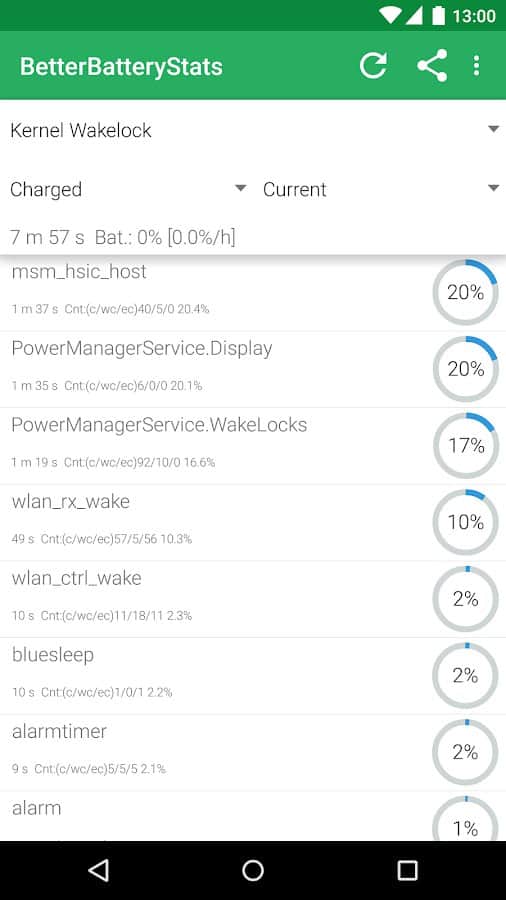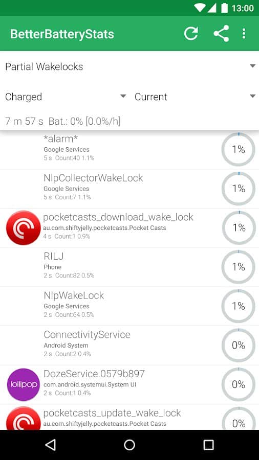 Aşırı hızlı pil boşalması - ne yazık ki, sıkça karşılaşılan bir sorundur. Özellikle, akıllı telefonun pili bekleme sırasında, görünür bir sebep olmadan boşaldığında bununla başa çıkmak zorlaşır. BetterBatteryStats bu sorunla başarılı bir şekilde mücadele ediyor. Uygulama, pilin boşalmasına neden olan süreçleri analiz eder ve bunları en aza indirmeye yardımcı olur, ağ, işlemci, uyanma nedenleri ve her uygulamanın aktif olduğu süre ile ilgili istatistikleri toplar. Kullanıcı ve sistem olarak ayrılmış zaman dilimlerine göre. Programın öğrenmek için biraz zamana ihtiyaç duyduğunu kabul etmek gerekir, ancak mobil arkadaşınızın pil ömrünü önemli ölçüde uzatmak için iyi bir destek olabilir.