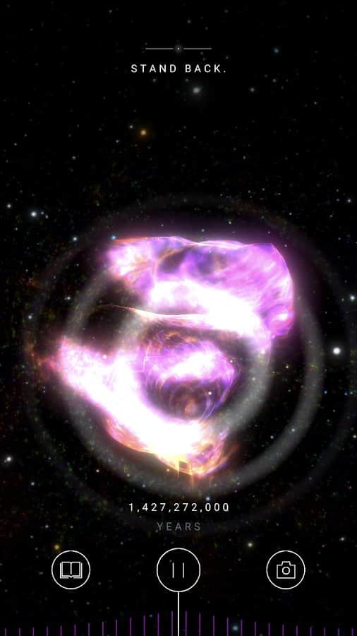 Büyük Patlama AR – evrenin yaratılışına tanıklık edeceğiniz artırılmış gerçeklik sanal dünyasını keşfedin. Evrenin patlaması sayesinde ilk yıldızların oluşumuna şahit olun. Gözlerinizin önünde tüm güneş sistemi ve evi olarak adlandırdığınız gezegen şekillenecek. Bu oyunda 13.8 milyon yıl geriye giderek uzayın, zamanın ve evrenin nasıl ortaya çıktığını öğreneceksiniz. Her şeyi ve hatta bizi oluşturan mikroskobik yapı taşlarının gerçeğini keşfedin.