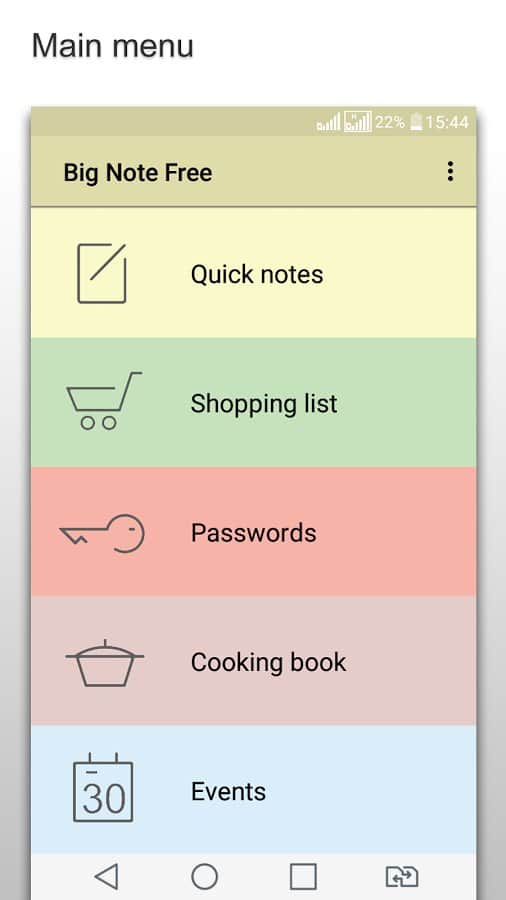 Büyük Not Ücretsiz - Not Defteri Veritabanı - Artık bir sürü farklı uygulama kullanmanıza gerek yok, bu çok fonksiyonlu not defteri ile çok daha fazlasını yapabilirsiniz. Burada hızlı notlar, alışveriş listesi, şifreler, yemek tarifleri defteri ve önemli olaylar gibi özellikler bulacaksınız. Tüm bu olanaklar farklı uygulamalar tarafından sağlanabilir, ancak burada hepsi bir arada toplandı, ayrıca kişisel kayıtlarınızı şifreyle koruyabilirsiniz.