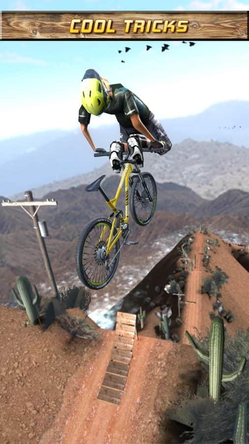 Bisiklet Dash – çeşitli engebeli arazilerde heyecan verici bisiklet yarışları. Tehlikeli patikalarda sürerken ve tehlikeli yokuşlardan deli hızlarla geçerken adrenalin patlamasını hissedin. Mümkünse tehlikeli engellerden kaçının ve çeşitli heyecan verici numaralar kullanın. Oyun, farklı parkurlarda dağ bisikleti yarışı ve sonsuz koşu oyununu bir araya getiriyor. Numaraları başarılı bir şekilde gerçekleştirdiğinizde size madeni paralar verilir ve bu paralarla yeni bisikletler ve çeşitli ekipmanlar satın alabilirsiniz. Oyunda birinci ve üçüncü şahıs bakış açıları arasında geçiş yapabilirsiniz. Küresel bir liderlik tablosu mevcuttur.