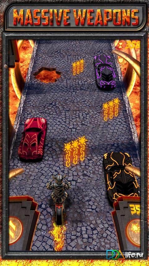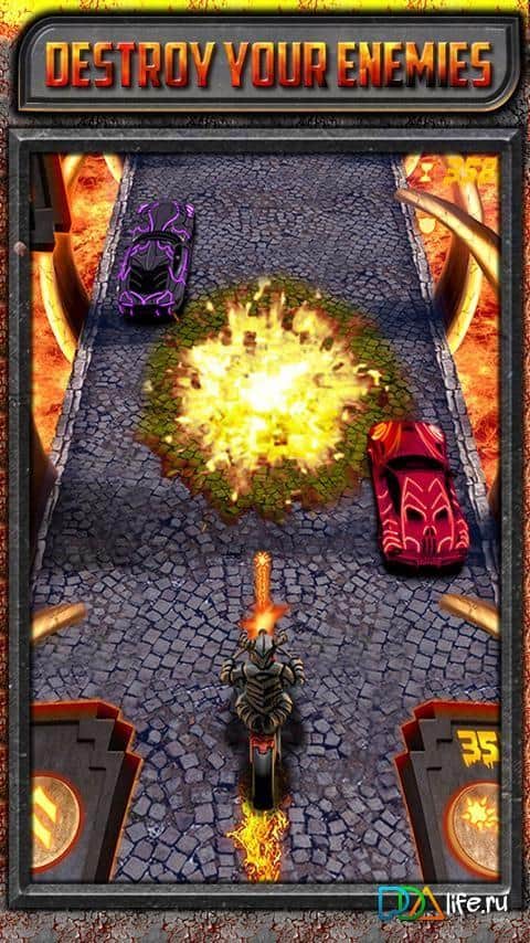 Yarış Tapınağında Bisiklet Yarışı - Android için bir oyun, burada motorunuzla kaykay yapmanız gerekiyor. Kahramanınız sıradan bir bisikletçi değil, gerçek bir ölü! Büyük hızlarda yarışın, güçlü silahlar satın alın, düşmanlarınızı öldürün. İsterseniz arkadaşlarınızla liderlik tablosunda birincilik için yarışabilirsiniz.