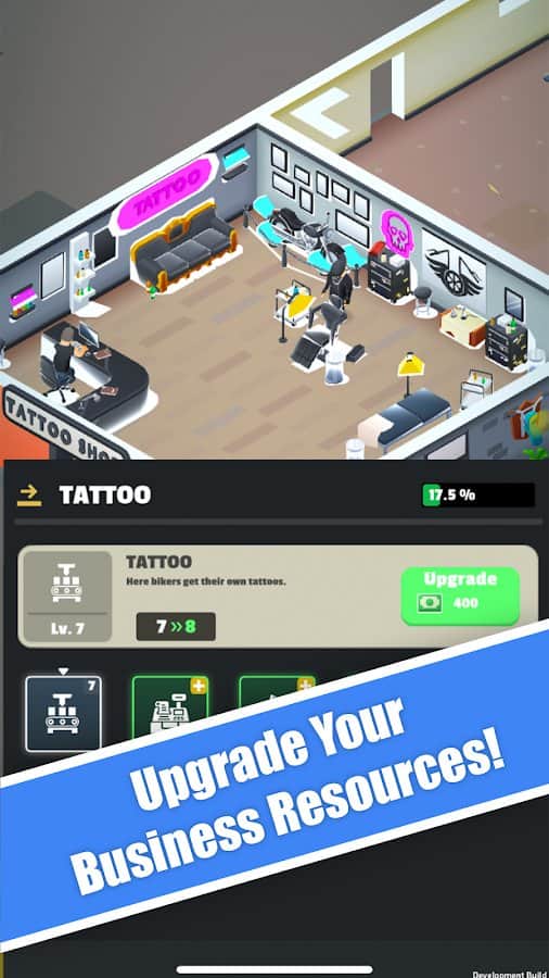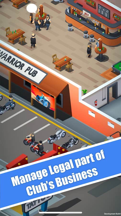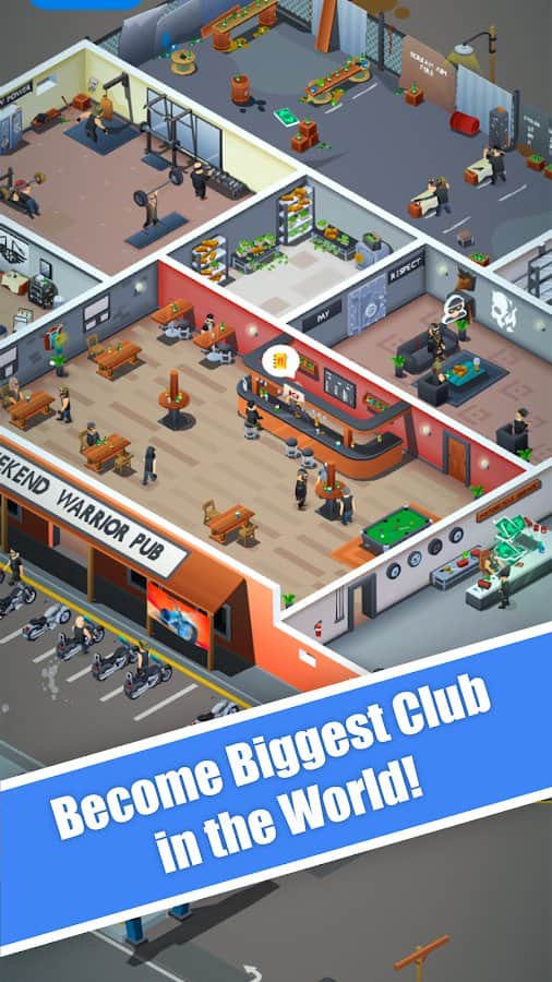 Motosikletçi Kulübü Tycoon - kendi motosikletçi kulübünüzü inşa ederek büyük miktarda para kazanın ve diğerleri arasında itibarınızı artırın! Kulübü sadece dünyanın en büyüğü yapmakla kalmayın, aynı zamanda yararlı alanlarla en rahat hale getirin: spor salonu, harika dövmeler için salon, bilardo ve lezzetli içeceklerin bulunduğu bar, dinlenme alanı ve diğer mekanlar. Değerli eşyaları satışa sunun, kulübünüzü her türlü yöntemle tanıtın, ziyaretçilerin maksimum rahatlamasına yardımcı olun ve neredeyse herkesin korktuğu motosiklet çetesiyle yönetin.