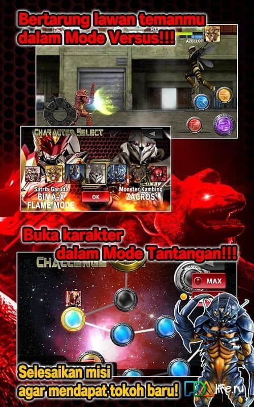 BIMA-X, popüler bir televizyon şovunun senaryosuna dayanan bir android dövüş oyunudur. Bu oyunda burada sunulan geniş bir yelpazeden kendinize bir kahraman seçmeniz gerekiyor. Oyunda iki oyun modu bulunmaktadır: bilgisayara karşı tek oyunculu ve arkadaşlarınızla Bluetooth üzerinden oynama. Beğendiğiniz modu seçin ve 10000'den fazla zafer elde etmeye çalışarak güçlü kahramanlarla sıralı dövüşlerde mücadele edin. Ayrıca oyun, en kolaydan çok zor olana kadar profesyonellere uygun birkaç zorluk seviyesini de sunacak. Her raundda rakibinize meydan okuyarak haritayı keşfedeceğiniz Challenge modunu deneyin; bu modda sadece dövüşü kazanmakla kalmayacak, aynı zamanda rakibinize karşı kombo saldırılar uygulayacaksınız. Kahramanınızı telefon ekranınızdaki düğmeler ve oklar yardımıyla kontrol edin.