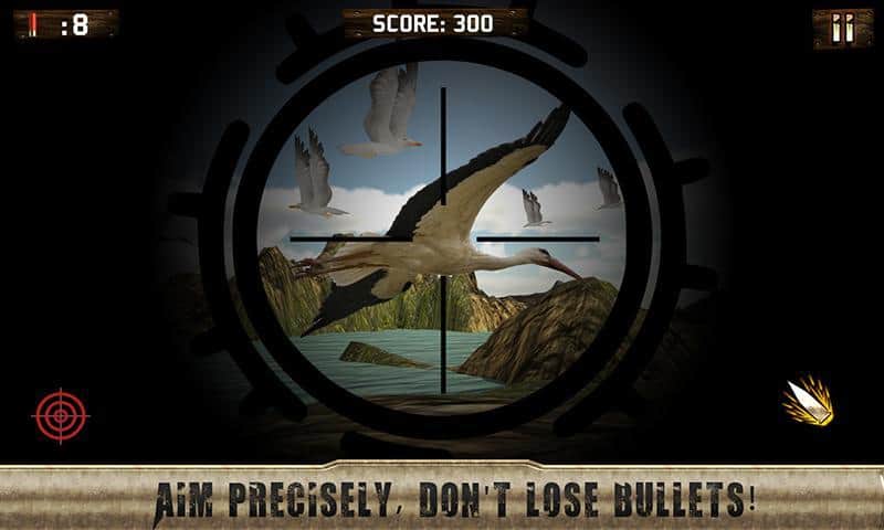 Kuş Avı Sezonu 2015 – bu heyecan verici simülatörde kuş avı sezonunu açın. Keskin nişancı tüfeğinizin hassas optik nişangahı ile kuşlara nişan alın ve ateş edin. Ördek, martı, güvercin ve diğer av kuşlarını avlayın ve her yeni seviyedeki misyonları tamamlamaya çalışın. Bu oyundaki her kuş farklı bir yönde ve kendi hızında uçar, nişan alın ve trofelerinizi toplayarak ateş edin. Hiçbir kuşu kaçırmamaya çalışın ve misyonları başarıyla tamamlayın. Yeni lokasyonları keşfedin ve ekipmanınızı güncelleyin. Oyunun açılan manzaralarının ve lokasyonlarının tadını çıkarın.