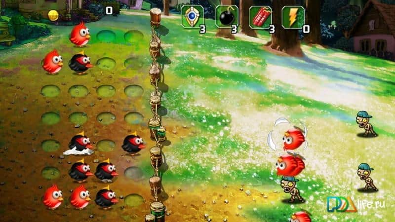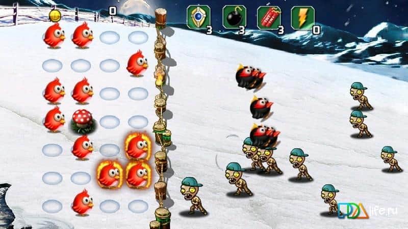 kuşlar vs zombiler 3 – android için bir aksiyon oyunu, burada kuşlara yardım edecek ve dünyayı korkunç zombilerden koruyacaksınız. Bu oyun, 'üç bir arada' türündeki oyunlara benziyor, ayrıca zombilere saldırmak için üç veya daha fazla kuşu bir araya getirmeniz gerekecek. İnsanlar bu zor savaşta düştü ve şimdi tüm umut küçük kuşlar üzerinde, mantıksal düşüncenizi kullanın ve zombileri yenmek için bir strateji geliştirin. Aynı kuşları bir araya toplayın ve onları platformdan yuvarlayın, böylece zombi zincirini kırabilir ve saldırılarını durdurabilirsiniz. Zombileri yok ettikten sonra madeni paraları toplayın ve bunlarla yeni kuşlar satın alın veya önceki kuşların seviyesini yükseltin.