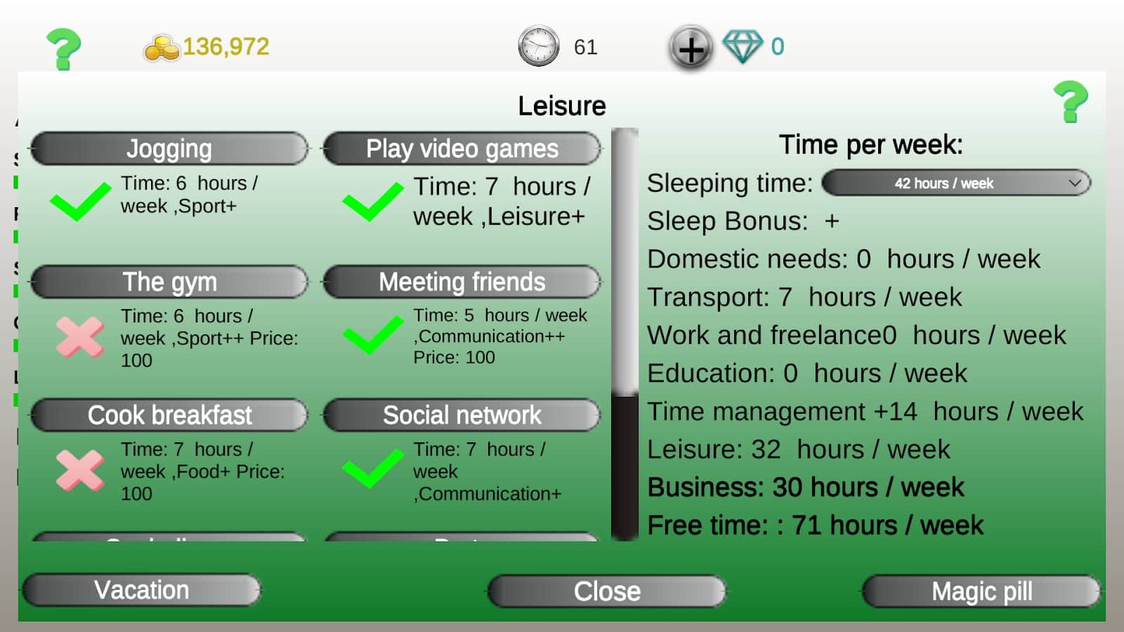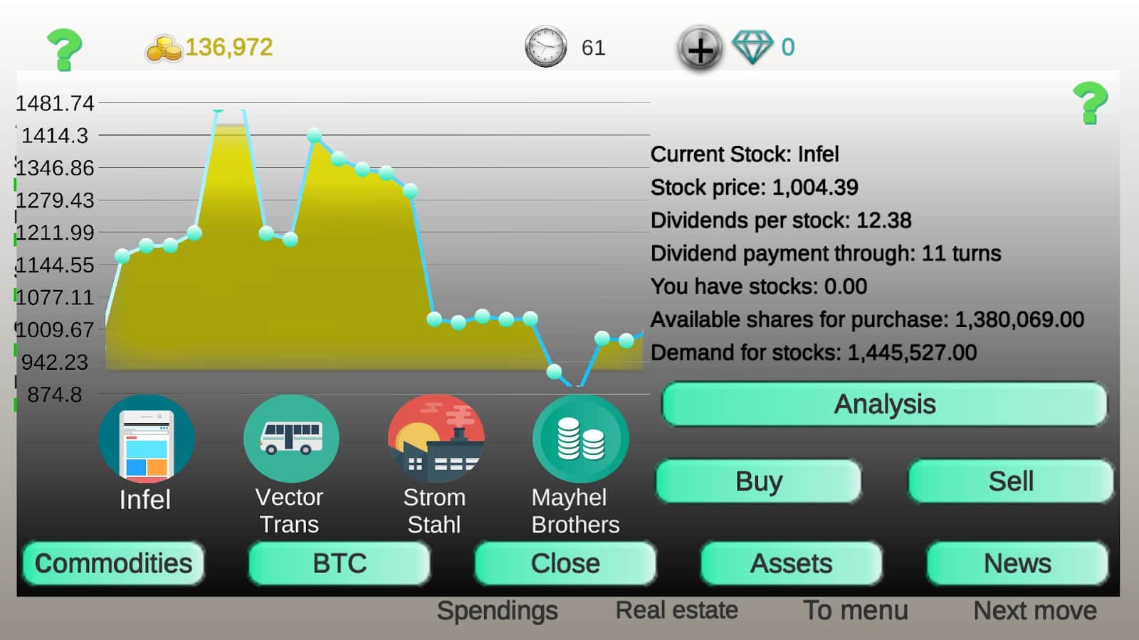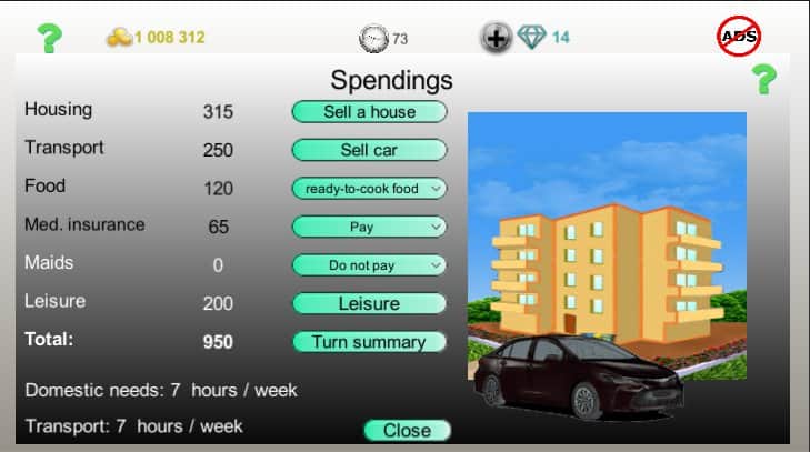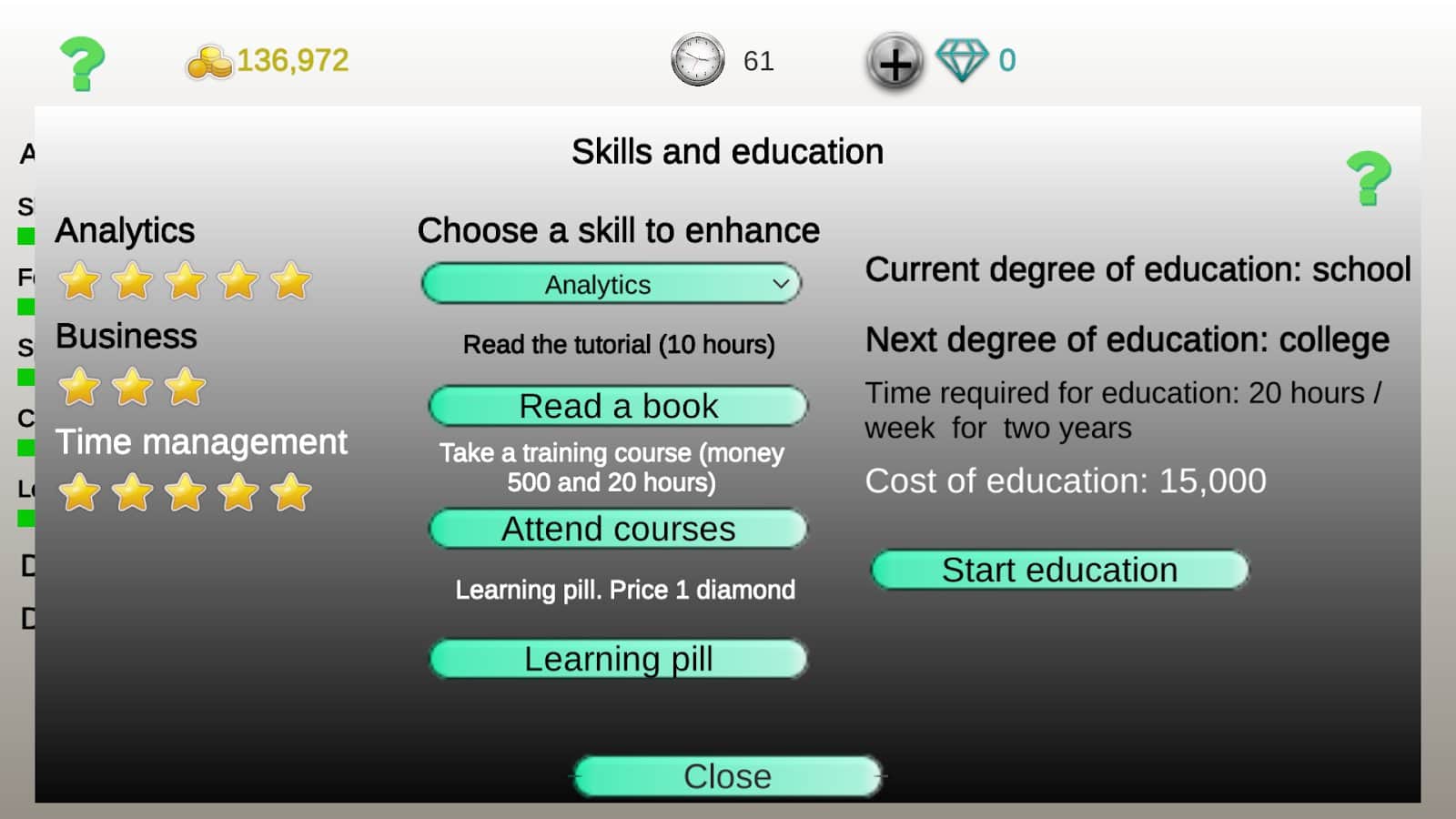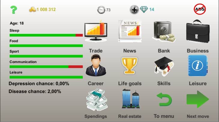 İş Stratejisi 2 - gelişim için büyük bir adım atın - kendi işinize yönelik adımlar atmaya başlayın. Yolculuğunuzun başında birine çalışmak zorunda kalacaksınız, ardından yavaş yavaş borsa ile ilgilenmeye başlayacak, daha sonra karlı bir iş kuracaksınız. Karlı ticaret yapın, güncel haberleri takip edin, bankada büyük miktarlar biriktirin, işinizi ve kariyerinizi geliştirin, hayatta hedefler koyun, becerilerinizi geliştirin, maliyetleri kontrol edin, gayrimenkul satın alın, kiracılar alın ve popüler bir mogul olun. Yeni projelere başlamaktan korkmayın, ancak eski projeleri de kaliteli bir şekilde tamamlamayı unutmayın!