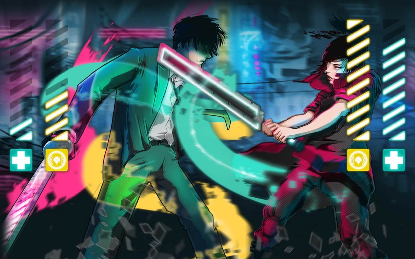 Şansın Kılıçları – Android için taktiksel bir dövüş oyunu, burada iki rakip karşılaşacak ve kılıçlarla savaşıyor olacak. Bu oyunu, arkadaşlarınızla tek cihazda oynayarak, acımasız ve hızlı bir çatışmada onlara meydan okuyarak oynayabilirsiniz. Bu heyecan verici oyunda, savaş sırasında dövüşçünüzü farklı yetenekler ve özelliklerle donatıp değiştirebilirsiniz; iyi bir savunma, hız artışı, can ekleme ve diğer faydalı yetenekler gibi. Bu oyundaki ilginç nokta, her rakip önünde zafer şansınızı en başından bilmenizdir. Savaş stratejinizi geliştirin ve bu oyunda diğer oyunculara meydan okuyun.