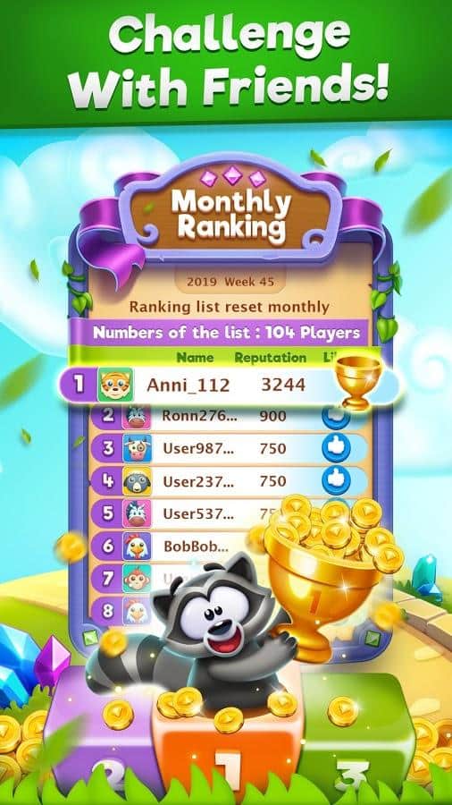 Bling Crush - parıldayan değerli taşlardan sıralar oluşturun ve patlatın. Bu Android oyununda, masalsı bir ülkede seyahat edecek ve değerli taşları patlatarak ödüller ve hediyeler kazanacaksınız. Taşları değiştirin ve aynı renkteki değerli taşlardan sıralar oluşturun ve heyecan verici seviyeleri geçin. Yolculuğunuzda birçok sevimli karakterle karşılaşacak ve onlara zorlukları aşmalarında ve tuzaklardan kaçmalarında yardımcı olacaksınız. Şans çarkını çevirin ve ekstra ödüller kazanın. Zor durumlarda bonusları ve güçlendirmeleri kullanın ve liderlik tablosunda daha yükseklere çıkın.