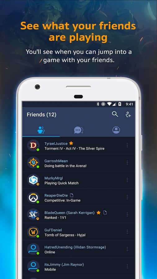 Blizzard Battle.net - arkadaşlarınızı takip edebileceğiniz ve hangi oyunları oynadıklarını görebileceğiniz basit bir mobil uygulama. Elbette oyun oynayamayacaksınız, ancak her yerde ve her zaman arkadaşlarınızla iletişim kurabilirsiniz. Ya da oyun oynarken mesajlara yanıt verebilirsiniz. Temelde uygulama basit ve PC'deki benzeri ile aynı işlevleri yerine getiriyor.