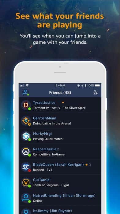 Blizzard Battle.net - arkadaşınız bir kez daha derse girmiyor ve hasta olduğunu mu söylüyor? Blizzard'ın yeni uygulaması, arkadaşlarınızın hangi oyunları oynadığını öğrenmenize yardımcı olacak. Bu, bilgisayarda kullandığınız uygulamanın tam bir eşdeğeridir, elbette burada oyunları indiremeyeceğiniz dışında. Ancak evde yokken veya oyun oynarken çok fazla dikkat dağılmadan arkadaşlarınızla istediğiniz zaman iletişim kurabilirsiniz. Genel olarak uygulama basit ve kullanışlı.