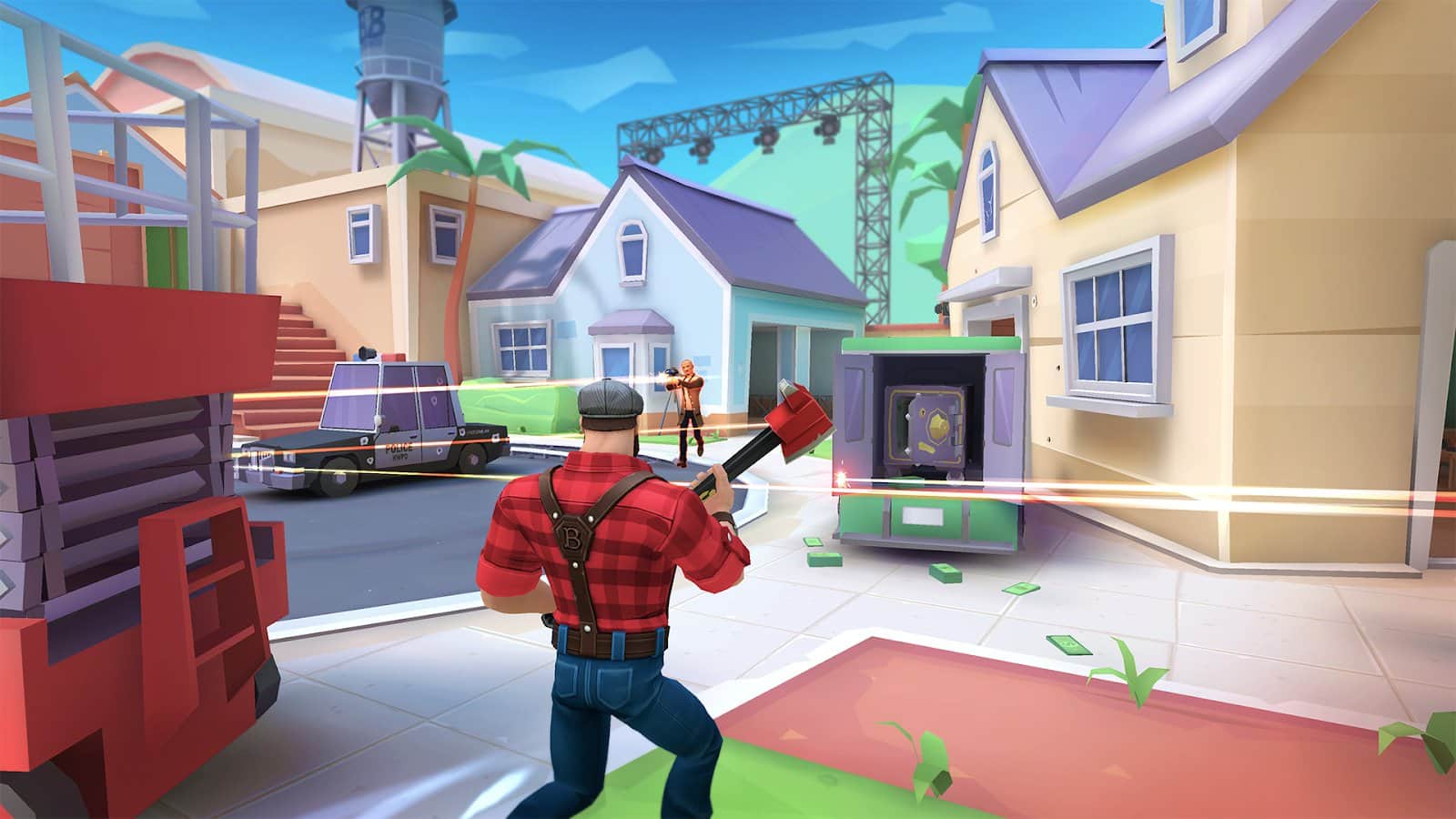 Blockbuster'lar: Çevrimiçi PvP nişancı - Nişancı oynamak istedim ve önümde oldukça büyük bir seçenek vardı, bu oyunu görünce grafiğine baktım, dürüst olmak gerekirse çok beğendim, Fortnite'a benzer parlak grafikler ve dinamik savaşlarla. Nişancı üçüncü şahıs bakış açısıyla yapılmış. Oyunda üç tür savaş tarzı var: yakın dövüş, uzak mesafeler için keskin nişancı tüfeği ve yoğun çatışmalar için saldırı tüfeği. Görevleri tamamlayın, karakterinizi geliştirin ve turnuva sıralamasında ilerleyin.
