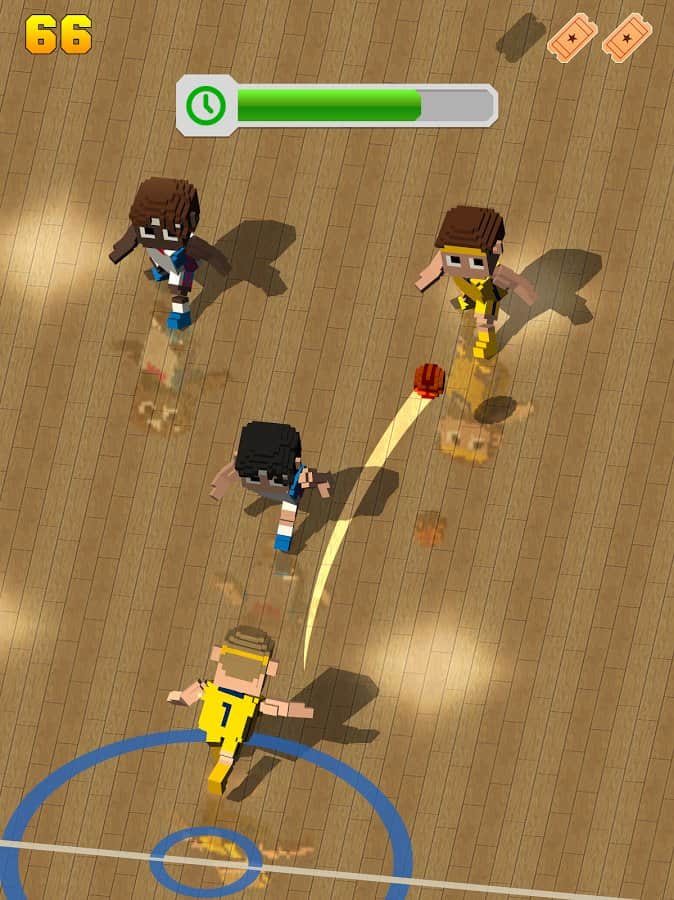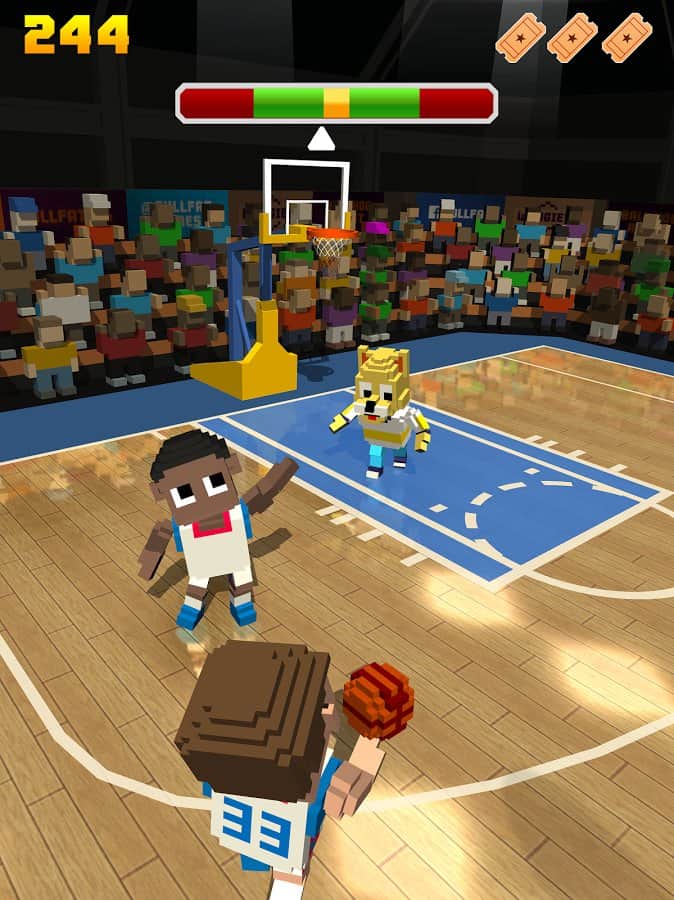 Bloklu Basketbol – basketbol takımınızı kontrol altına alın ve onu ana şampiyonada zafer için yönlendirin. Bir oyuncudan diğerine pas verin ve topu rakip potaya atın. Takımınızı çeşitli basketbol sahalarına çıkarın ve dinamik ve uzun süreli maçlara katılın. Yüksek sıçramalar yapın ve topu uzak mesafeden potaya atın. Rakip oyuncuları ustaca geçin ve bir isabetli atışla arka arkaya topları potaya atın. Puan kazanın ve oyunun yeni karakterlerine erişim kazanın, bu karakterlerin kendine özgü görünüşleri ve benzersiz özellikleri var. Oyun blok grafiği ile tasarlanmıştır. Android için basketbol mu arıyorsunuz? O zaman buraya göz atın.