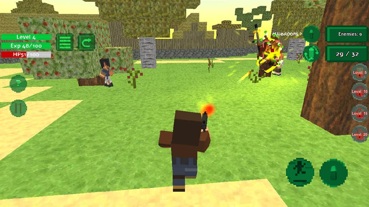 Blocky Island Rampage – canavarlardan ve savaş robotlarından kurtulmak isteyen devasa bir adayı keşfedin. Silahınızı kapın ve düşmanlarınızı izleyerek adayı keşfedin ve onları yok edin. Yoğun ormanlardan geçin ve devasa vadileri keşfedin, ayrıca sulardan düşmanları yok ederek botla gezinin. Köy halkıyla güçlerinizi birleştirin ve onlarla birlikte tüm düşmanlara karşı koyun. Silah arsenalinizde her zaman ilginç bir şey bulunur, bu yüzden tüm silahları ve roket rampalarını aksiyonda test edin. Çeşitli arazilerde hareket edin ve sığınak arayın, böylece zafer şansınızı artırın.