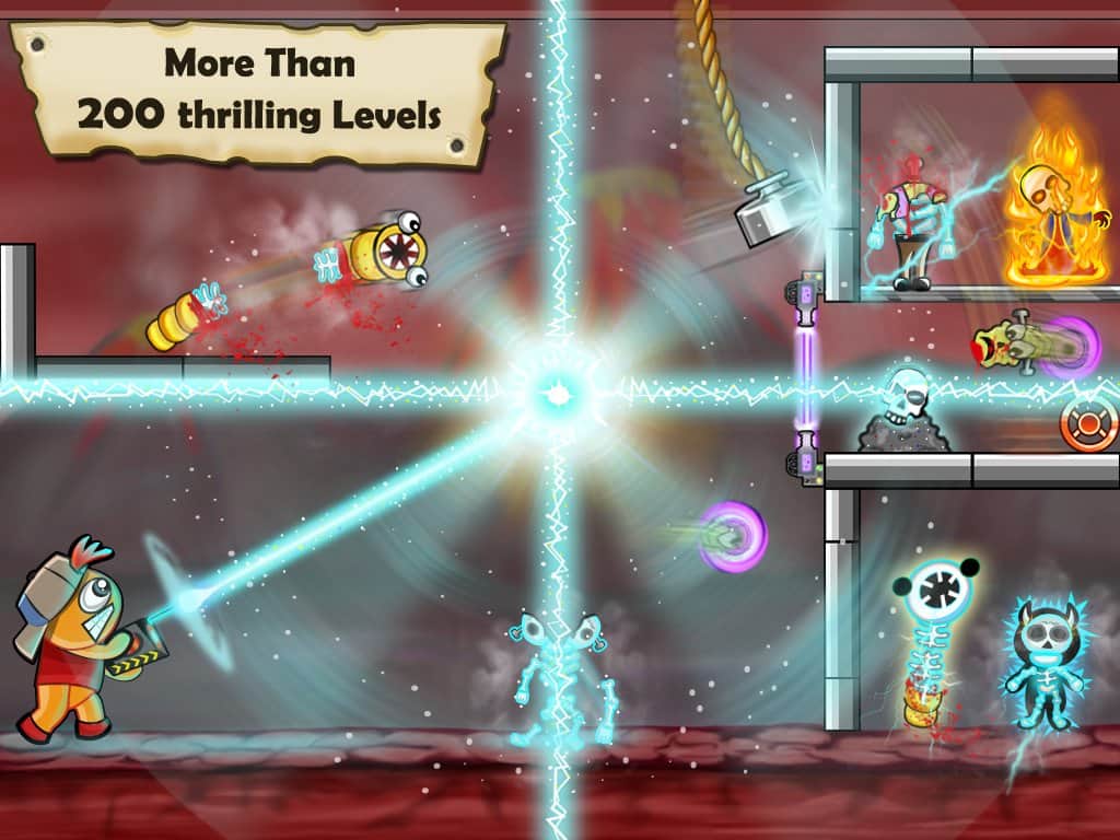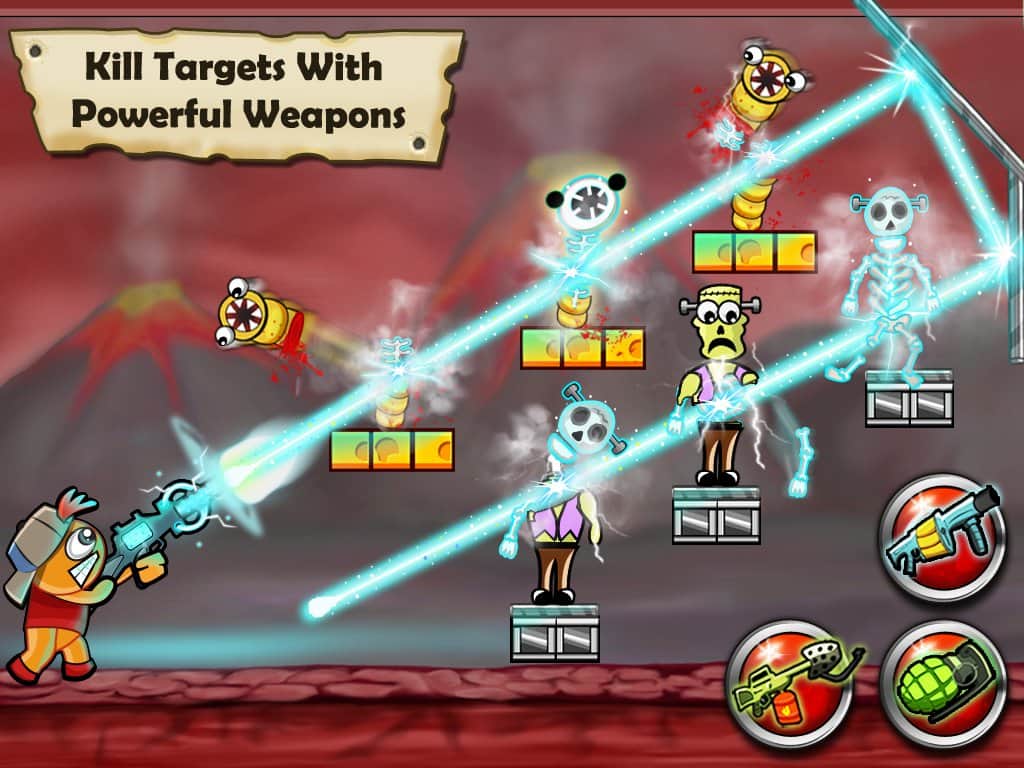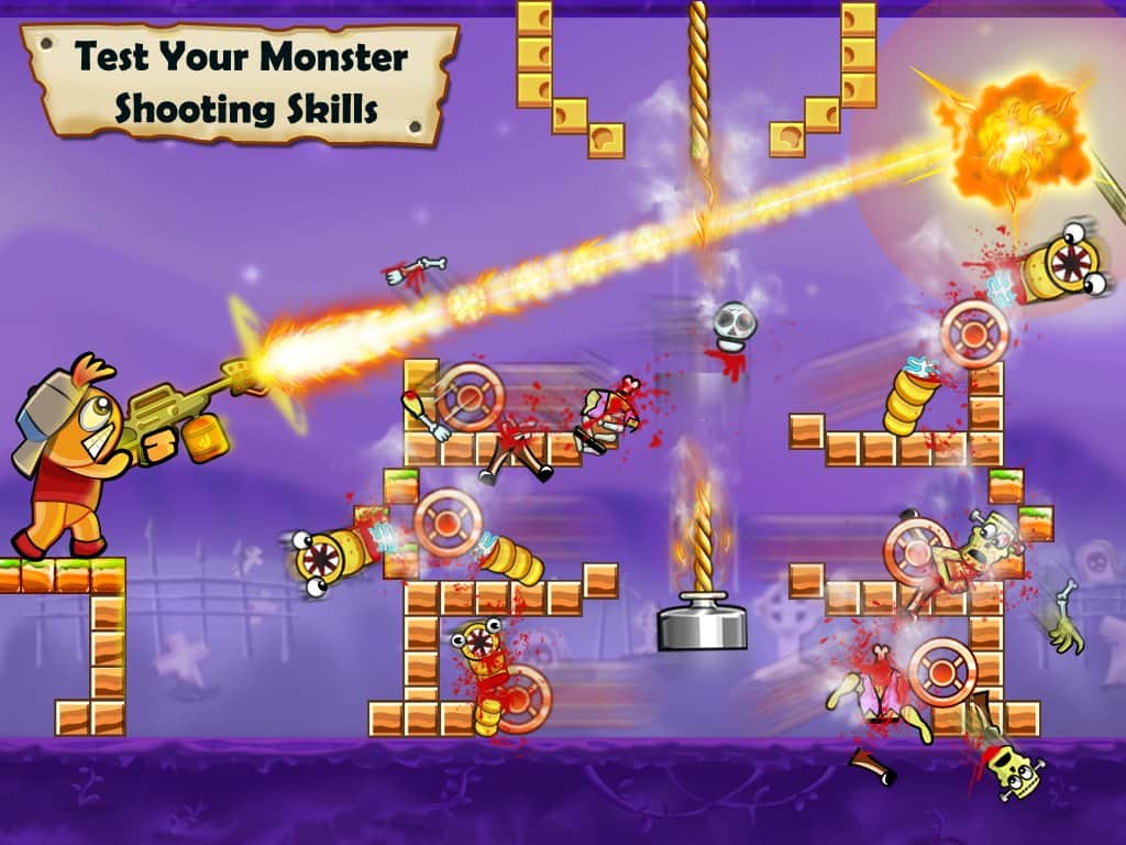 Kanlı Canavarlar - size kan emici canavarlara nişan almanız gereken bir Android oyunu. Mümkün olduğunca çok canavarı öldürmek için merminin yolunu hesaplamanız gereken harika bir bulmaca.