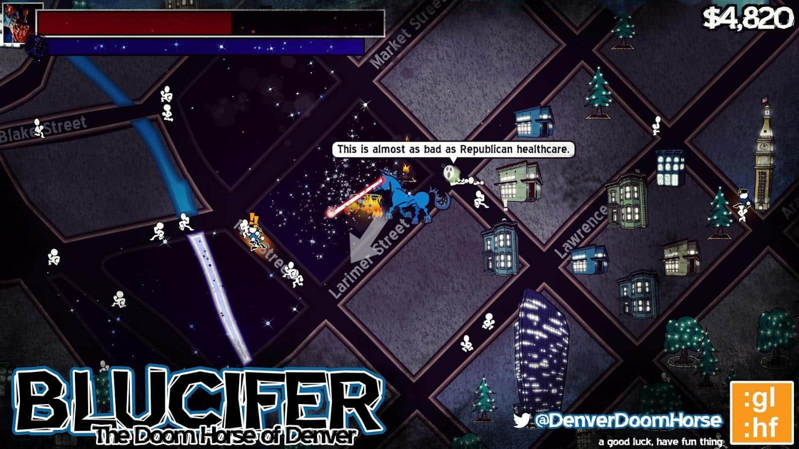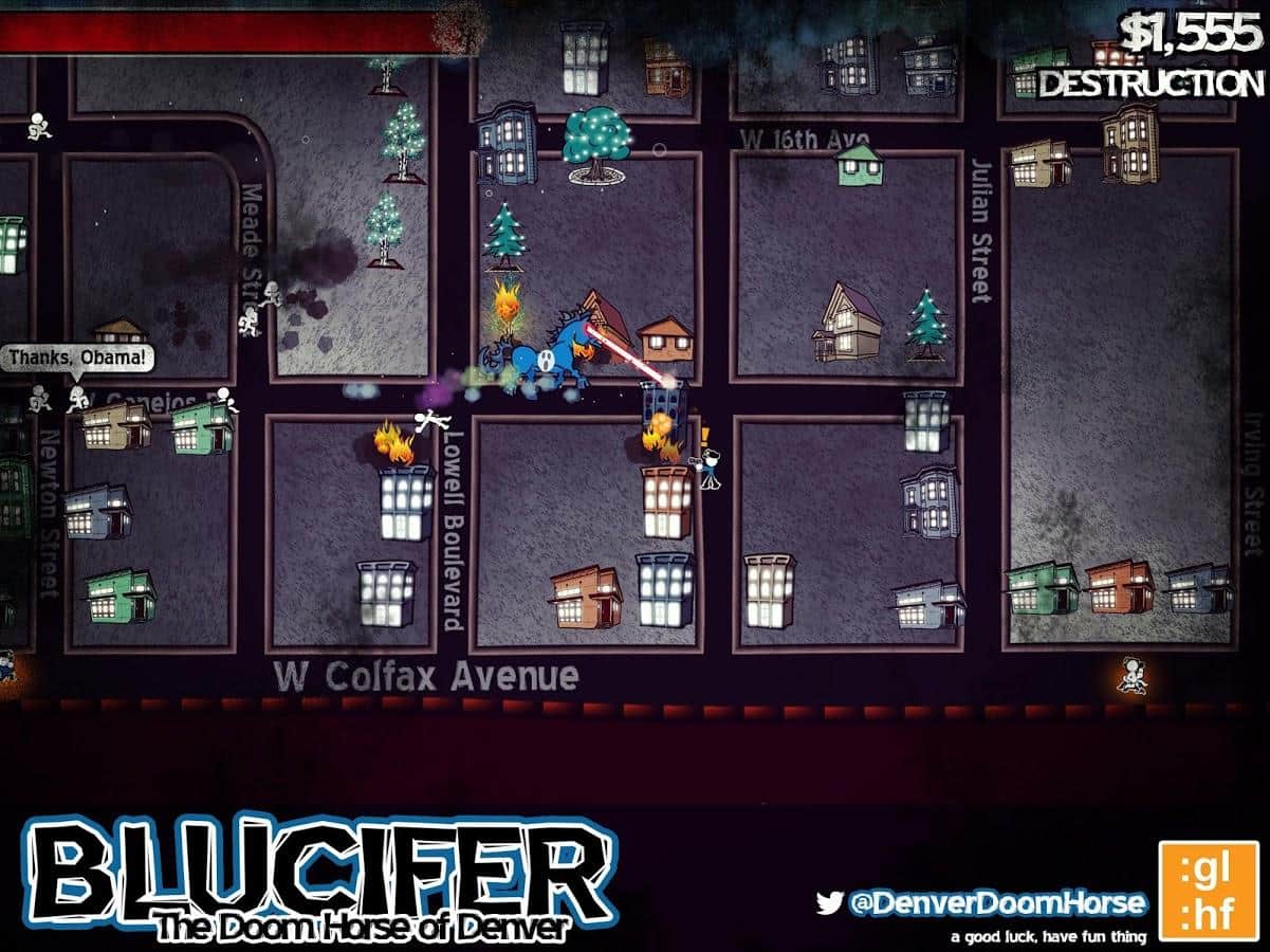 Blucifer: Denver'ın Kıyamet Atı - üstten görünüşe sahip dinamik bir aksiyon arcade oyunu, olayların Amerika'nın Denver şehrinde geçtiği bir oyundur. Tanıkların ifadelerine göre, Rocky Dağları'nın eteklerinde her şeyi yok eden bir pegaz ortaya çıkmış. Bu yaratık rolünde oynamanız gerekiyor. Gizemli ölüm ışığı ile silahlanın ve tam bir yaşam alanını, araçları ve hatta şehirleri yok edin. Bu oyun, birkaç boş saatinizi değerlendirmek için mükemmel bir seçimdir.