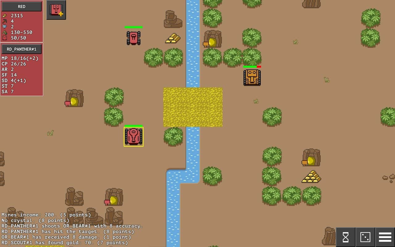 Tahta Tanklar - Her türlü arazide ve büyük bir asker sayısıyla tank savaşları. Eğer bunu bir arcade oyunu olarak düşündüyseniz, yanıldınız. Bu, AI ile sırayla oynayacağınız gerçek bir strateji. Buradaki zorluk seviyesini birkaç dokunuşla kolayca ayarlayabilirsiniz ve savaş taktiği kazanmak için gereklidir. Oyundaki grafiklerin oldukça basit olduğunu hemen belirtmek gerekir, ancak bu onu daha iyi, daha ilginç ve eski iyi stratejilere daha benzer hale getiriyor. Oyundaki tüm araçlar farklıdır, kendi avantajları ve özellikleri vardır ve çeşitli görevleri yerine getirmek için uygundur.