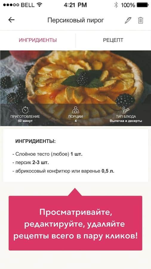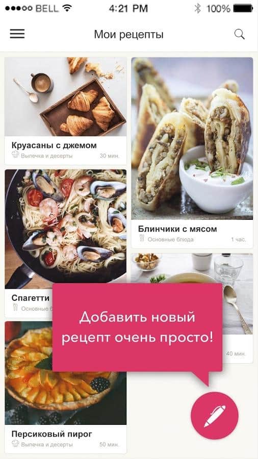 Büyük Yemek Kitabı - sıcak ve soğuk yemekler, içecekler, atıştırmalıklar, tatlılar vb. kendi tariflerinizi saklamak için uygun olacaktır. Ayrıca diğer kullanıcıların beğendiğiniz tariflerini ekleyebilir ve bunları arkadaşlarınızla paylaşabilirsiniz. Mutfak yeteneklerinizi keşfedin. Artık tarifleri deftere, kağıtlara yazmak ya da web sayfalarını yer imlerine kaydetmek için zaman harcamanıza gerek yok. Tüm yemekler güvenilir bir yerde olacak. "Lezzetli şaheserlerinizi" yaratın ve bunlarla özel gün masanızı veya romantik akşam yemeğinizi süsleyin. Sevdikleriniz eşsiz lezzet ve özgün sunumun tadını çıkaracaklar.