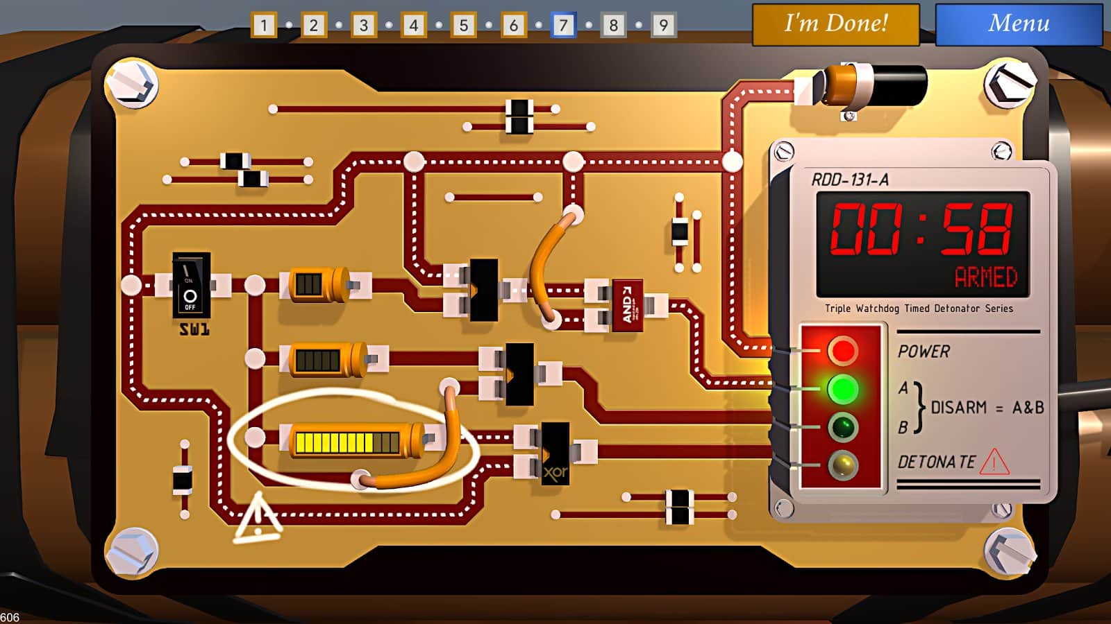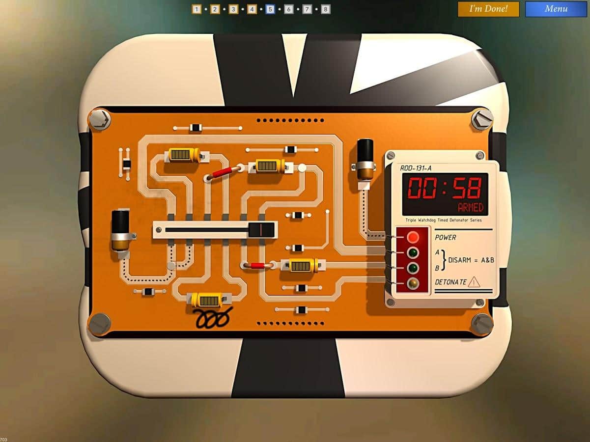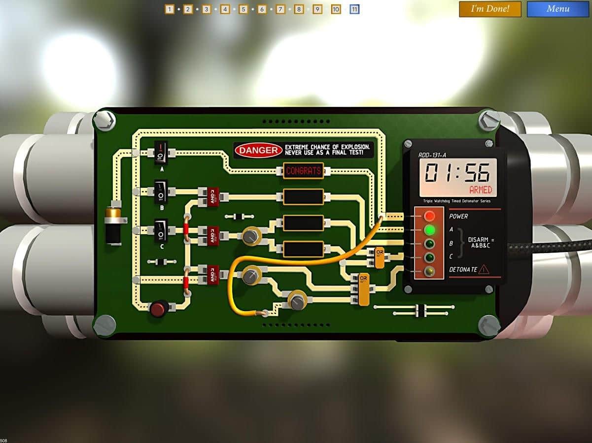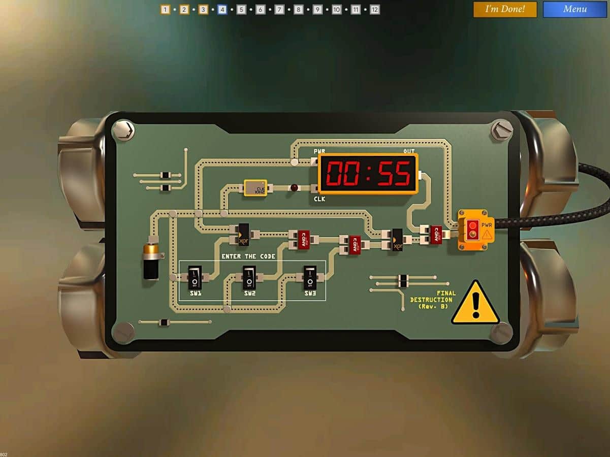 Bomba İmha Akademisi, belirli bir süre içinde bombaları imha edeceğiniz bir Android bulmaca oyunudur. Bu oyunda, dünyayı kurtarmak için bilgilerinize ve mantığınıza güvenmeniz gereken bir patlayıcı uzmanı rolünü üstleneceksiniz. Bombanın devresini analiz edin ve detonatörü doğru bir şekilde kapatın. Her yanlış hareketinizin bombanın patlamasına yol açabileceği için son derece dikkatli ve özenli olun. Oyun ilerledikçe şemaların zorluğu artacak, bu da hızlı tepki verme ve mantık bulmacalarını çözme yeteneğinizi test edecektir.