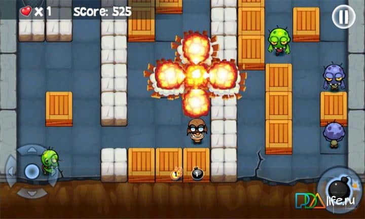 Yok etme konusunda - tüm kötü ruhları bir arada patlatmalısınız - zombiler, yarasalar, mezar taşları ve kafatasları - kısacası tüm iğrençlikler! Zombilerin yavaş, hızlı ve teleport olanları var, bu yüzden dikkatli olun! Size çeşitli bonuslar yardımcı olacak. Ancak anti-bonuslar da var (dikkatli olun!). Bombaların çeşitliliği hakkında yazmanın bir anlamı yok - kendiniz göz atın.