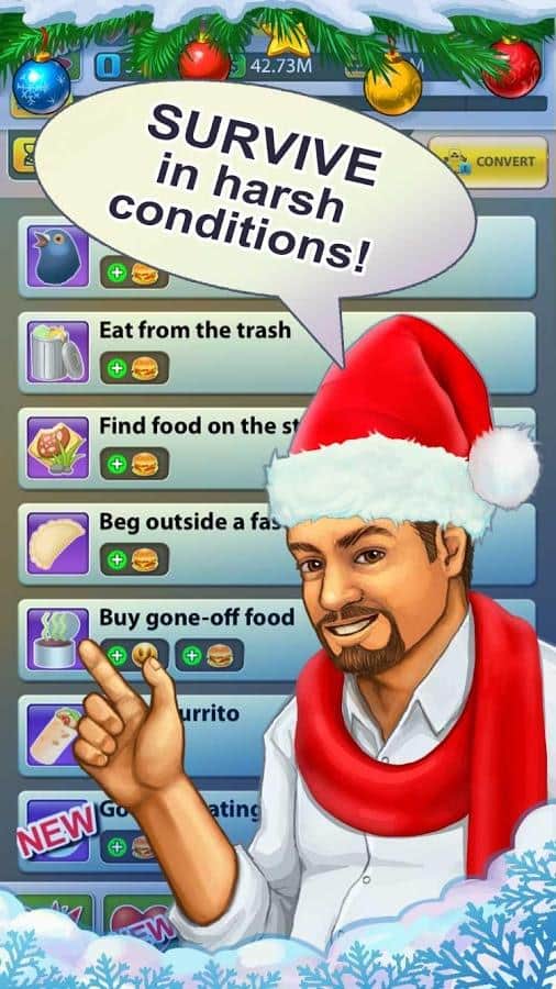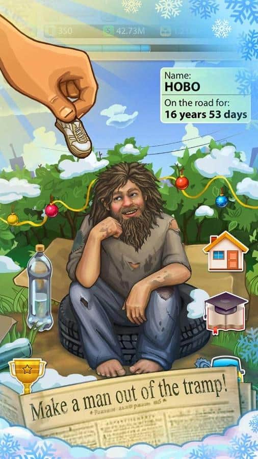 Serseri - başarı hikayesi, ilginç ve kendine özgü bir hayatta kalma simülatörüdür. Bu oyunda kendini en sıradan bir serserinin yerine koyabileceksin! Bir bankta ya da sıradan bir karton kutuda uyumak, şişe toplamak ve sokakları süpürmek, bunların hepsini tek bir amaç için yapacaksın - insanların arasına karışmak ve milyonlar kazanmak! Hayat acımasızdır ve yalnızca en azimli olanlar sokak yaşamının zorluklarına dayanabilir. Ve en önemlisi, sağlığını unutma! 80. seviye bir serseri ol.