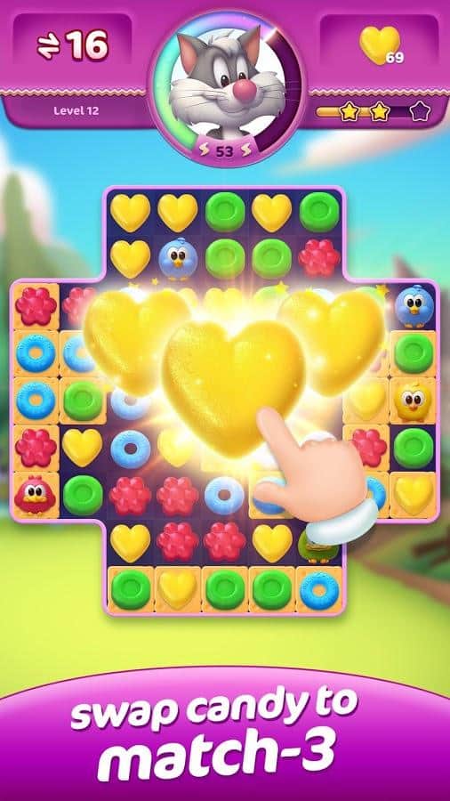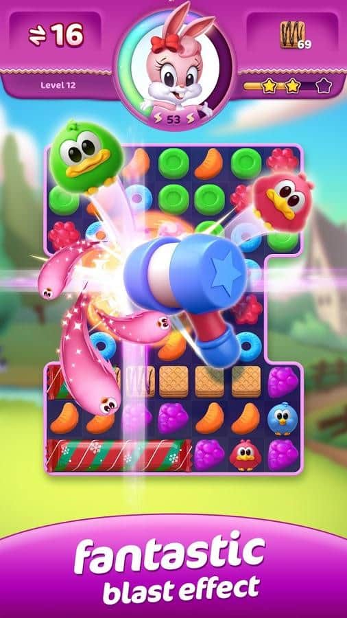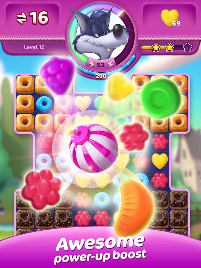 Bonbon Patırtısı – Android için üçlü eşleşme türünde bir macera oyunu, burada kurnaz bir kurtla rekabet edeceksiniz. Üç veya daha fazla nesne birleştirerek patlatın, ödüller ve bonuslar kazanın. Masalsı bir dünyada seyahat edin ve zorlayıcı görevler ve bulmacalar çözün. Şekerleri bir araya getirin ve çeşitli güçlendirmeleri kullanarak inanılmaz zincir reaksiyonları yaratın. Farklı oyun etkinliklerine katılın ve ödüller kazanın. Oyun modlarını deneyimleyin ve harika grafiklerin ve çok sayıda seviyenin tadını çıkarın.