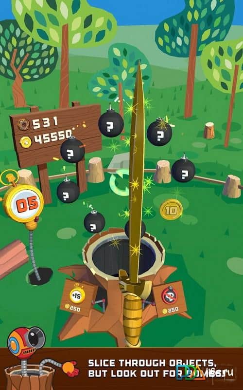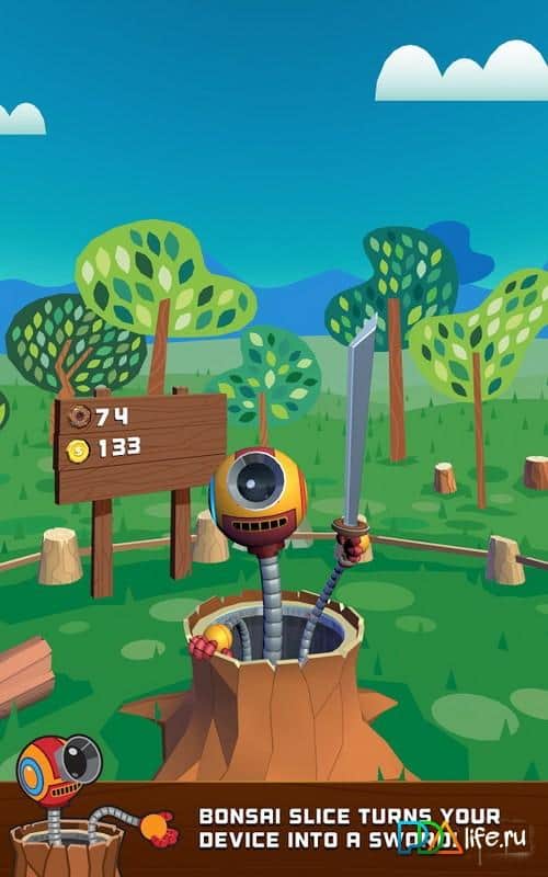 Bonsai Dilimi - cihazınızı kılıca dönüştürecek bir oyun. Bu oyun sayesinde donutları, paraları, teyp, mantarları ve elmaların parçalarına ayırabilirsiniz, ancak dokunmanız durumunda patlayabilecek bombalara dikkat edin. Oyunda kullanabileceğiniz ve benzersiz özelliklerini test edebileceğiniz birçok farklı kılıç var. Arkadaşlarınızla liderlik tablosunda en yüksek yerler için rekabet edebileceğiniz heyecan verici bir oyun.