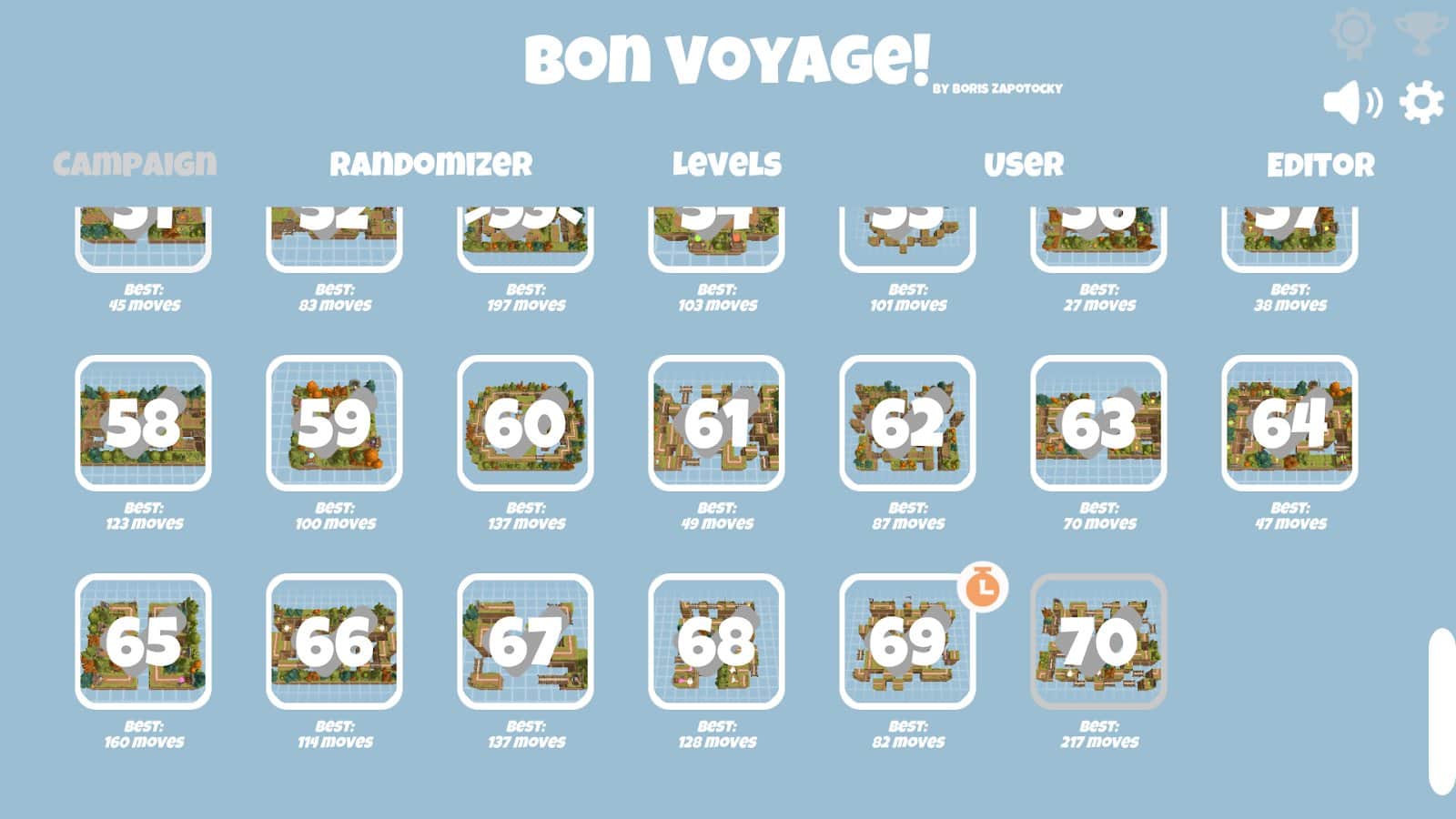 BonVoyage! - Android için bir bulmaca oyunudur, burada sizden, karakterlerin A noktasından B noktasına ulaşmasına yardımcı olmak için sözde karoları sürüklemeniz istenir. Sıkışıp kalan şövalyelerin yollarını onarmak için bir yol inşa edin; oyun kuralları ve zorluklarıyla farklı seviyelerde. Dikkatli olun, karolar yalnızca belirli bir mesafe boyunca hareket ettirilebilir ve manevra alanı azdır, bu yüzden hangi karoyu önce hareket ettireceğinizi önceden düşünmeniz gerekecek. Ayrıca, artırılmış gerçeklik teknolojisi desteği sayesinde oyunu doğrudan masanıza da taşıyabilirsiniz. Sizi 70'ten fazla seviyeden oluşan zorlu bir kampanya ve 20'den fazla ücretsiz DLC seviyesi ile birlikte otomatik olarak üretilen sonsuz oyun seviyeleri bekliyor.