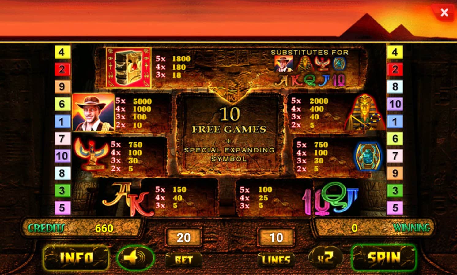 Ra Kitabı Deluxe Slotları – size antik Mısır hiyeroglifleri ve yazıtların inanılmaz dünyasını açacak bir android slot makinesi. Bu oyunda, yalnızca seçkinlerin öğrenebildiği firavunların tüm sırlarını ve gizemlerini açığa çıkarmaya çalışacaksınız. Ödüller kazanmak için tüm mantığınızı ve şansınızı kullanın. 10 farklı sembolün bulunduğu slot makinesi makaralarını çevirin ve bahislerinizi yapın. Kazanırsanız size on ücretsiz dönüş veya kazancınızı iki katına çıkaracak çeşitli ödül ve mini oyunlara katılın. İçgüdülerinize güvenin ve antik firavunların tüm sırlarını ve bilmecelerini açığa çıkarın.