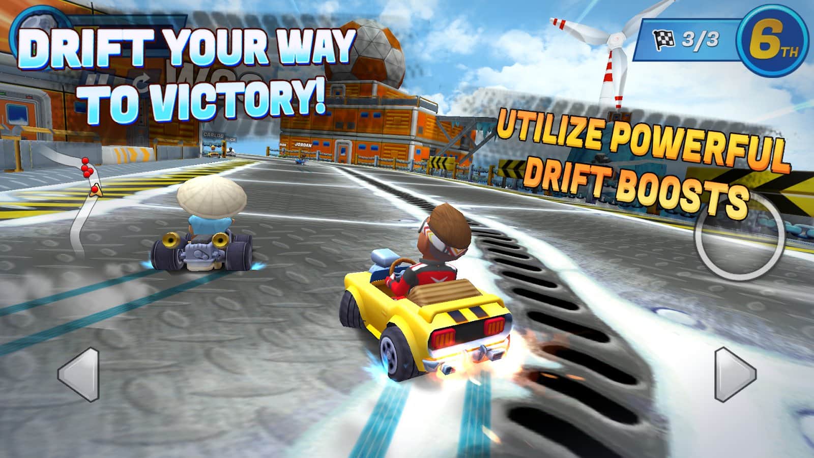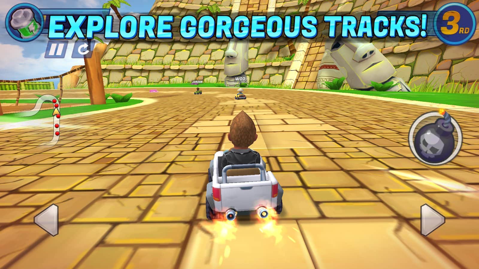 Boom Karts - Çok Oyunculu Kart Yarışı – kendi arabanızla yüksek hızlarda geçeceğiniz bir oyun. Direksiyona geçin ve gaza basın, yarışlara ve spor müsabakalarına katılın, rakiplerinizi geçmesine izin vermeyin ve zamanında finish çizgisine ulaşın. Ödüller kazanın ve madeni paralar kazanın, aracınızı güçlendirin, yeni parçalar satın alın ve onu geliştirin, böylece daha hızlı gidebilirsiniz. Rakiplerinizi devre dışı bırakmak için silahlar, bombalar ve diğer küçük bonusları kullanın. Gerçek zamanlı modda oynayın ve 8 farklı parkurda yeteneklerinizi deneyin.