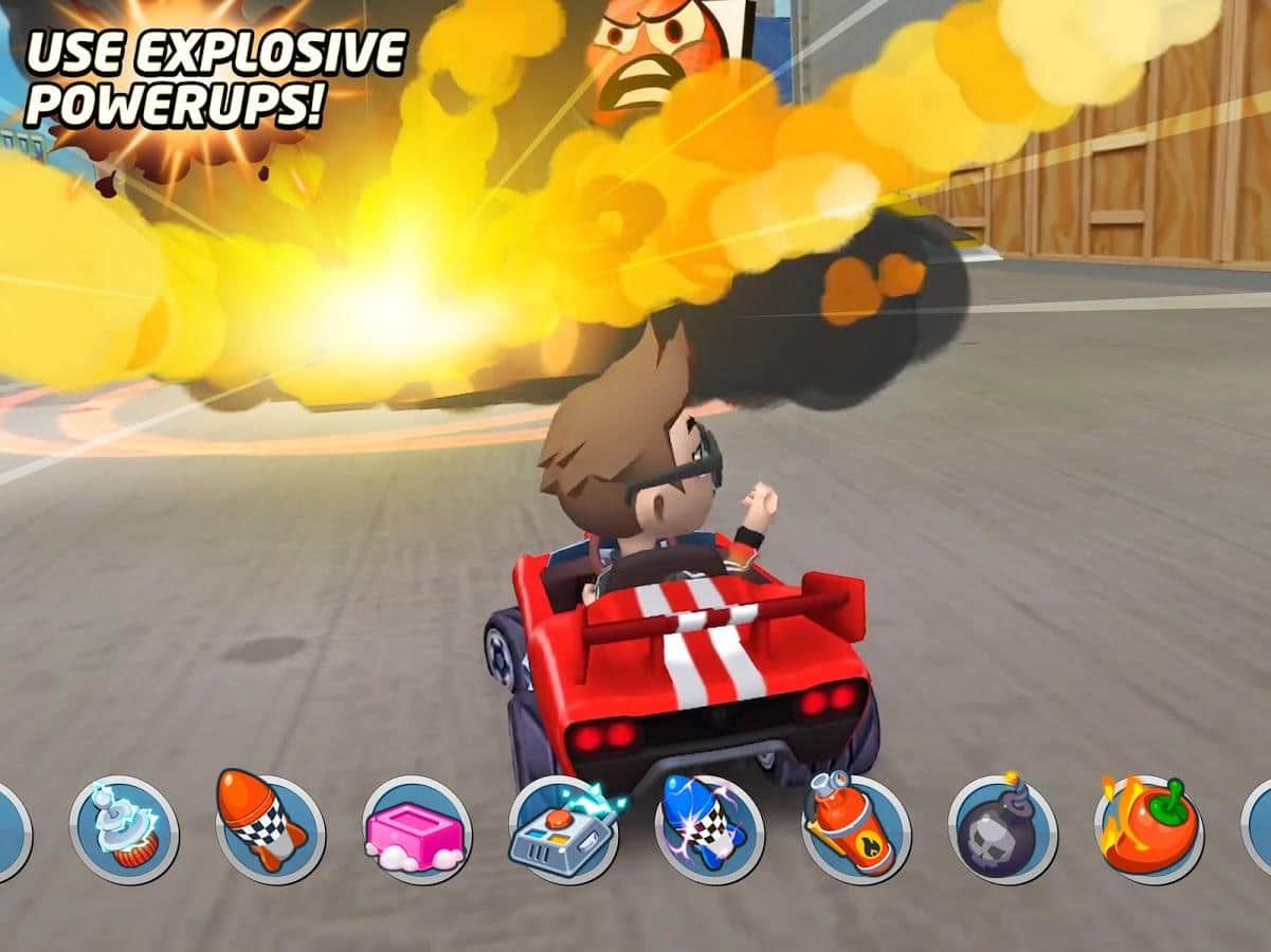 Boom Karts - Çok Oyunculu Kart Yarışı - Turbo modunu açın ve sıradışı yarışlarda finişe birinci gelin! Rakiplerinize kusursuz sürüş becerilerinizi, güçlü bombalar ve diğer nesnelerin mükemmel bir cephaneliği ile düşmanlarınıza zarar verme olanağını gösterin. Arkadaşlarınızla çevrimiçi savaşın, avatar, araç ve sürücünün görünümü seçerken kendi tarzınızı bulun. Gaz pedalına cesurca basın ve özellikle parkurlardaki ani, beklenmedik virajlarda inanılmaz şeyler yapın. Arızalar veya iyileştirmeler durumunda, her zaman aracın parçalarını değiştirebilirsiniz.