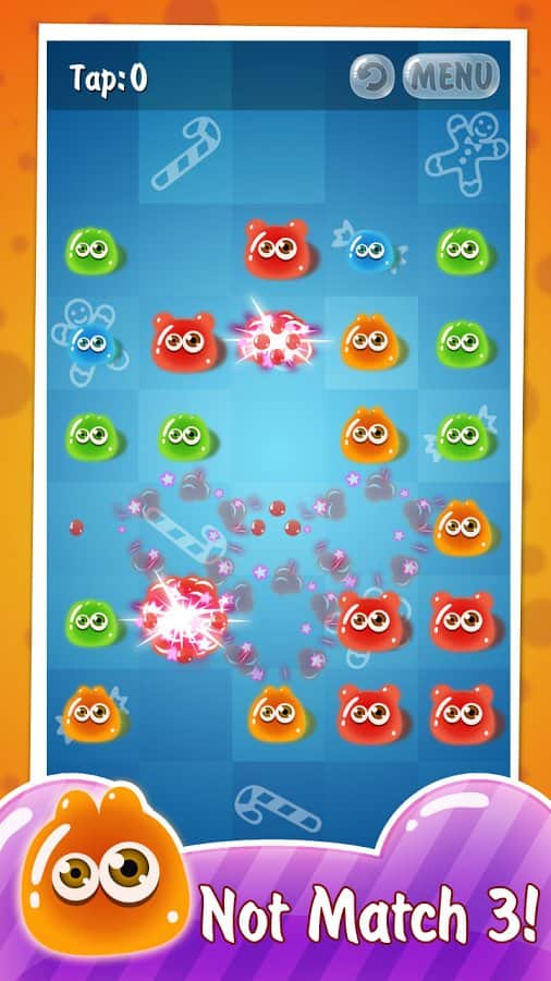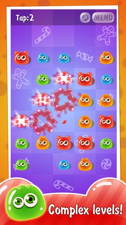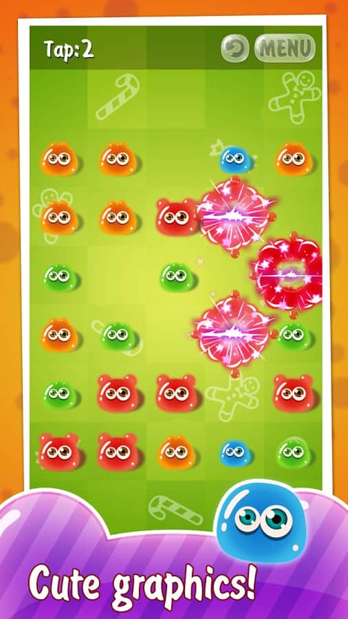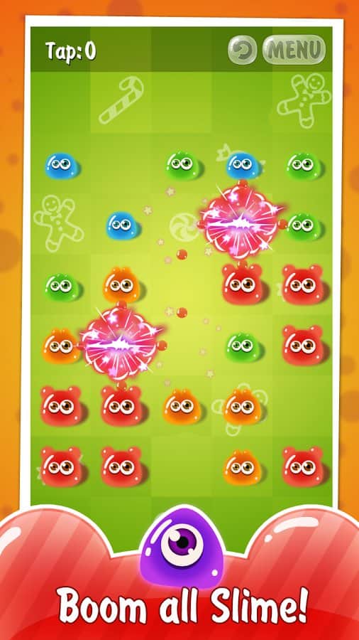 Boom Slime – Android için bir üçlü eşleştirme oyunu, burada renkli jöle şekerlerini patlatacaksınız. Üç veya daha fazla aynı şekeri bir sıraya yerleştirip, parmağınızla üzerine tıklayarak patlatın. Bu oyunu oynayın ve eğlenceli patlamaların ve heyecan verici görevlerin tadını çıkarın. Patlama zincir reaksiyonlarını başlatın ve mümkün olan en hızlı şekilde oyun seviyelerini geçmek için birçok bonus ve güçlendirme kullanın. Oyunu tamamlamak için daha az hamle harcayın ve ödüller kazanın. Oyunda toplamda 80'den fazla çeşitli seviye, 10 benzersiz başarı ve hoş bir rahatlatıcı grafik bulunmaktadır.