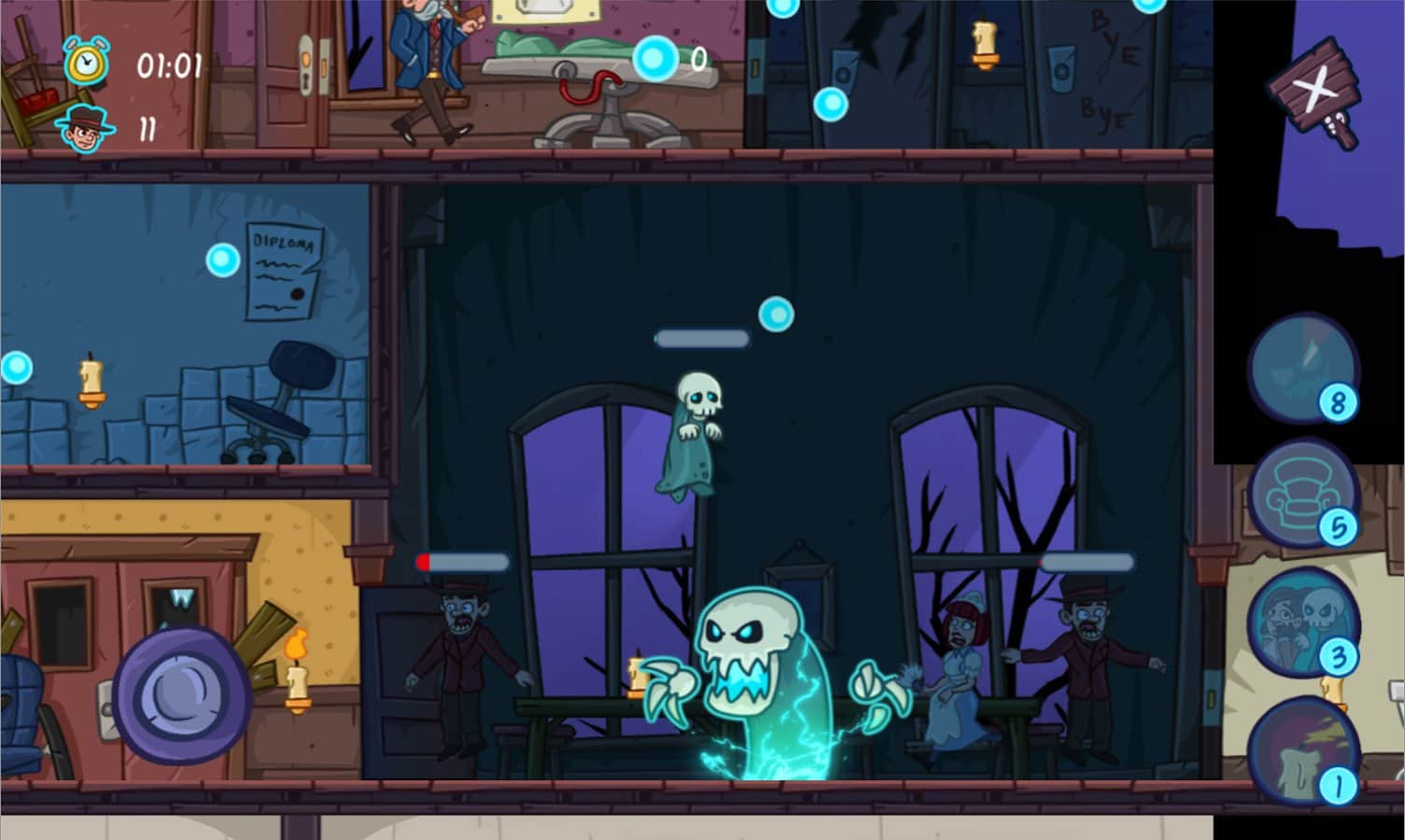 BoOooo – Android için heyecan verici bir oyun, burada utangaç hayalet Boo'ya insanları korkutmasında yardım edeceksiniz. Hayaletimiz oldukça barışçıl bir varlık, o, şöminenin yanında bir fincan çay eşliğinde sevdiği gazetesini okumayı sever. Ancak bir gün evine, burada yaşamaya karar veren insanlar geldi ve bu da Boo'nun huzurunu bozdu. Hayaletin elinde başka bir seçenek kalmadı, gazetesini bir kenara bırakıp gerçekten heyecan verici bir işle uğraşmaya karar verdi - insanları korkutmak. Boo'ya evin çeşitli sakinlerini korkutmasında yardım edin, bir odadan diğerine geçerken sakinleri evden sonsuza kadar kaçmaları için korkutmanın yeni ilginç yollarını arayın.