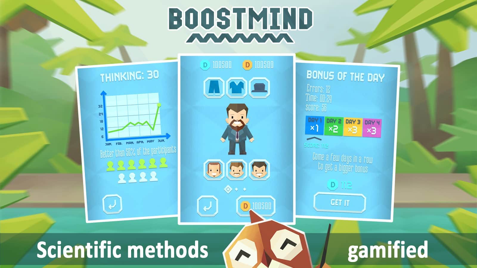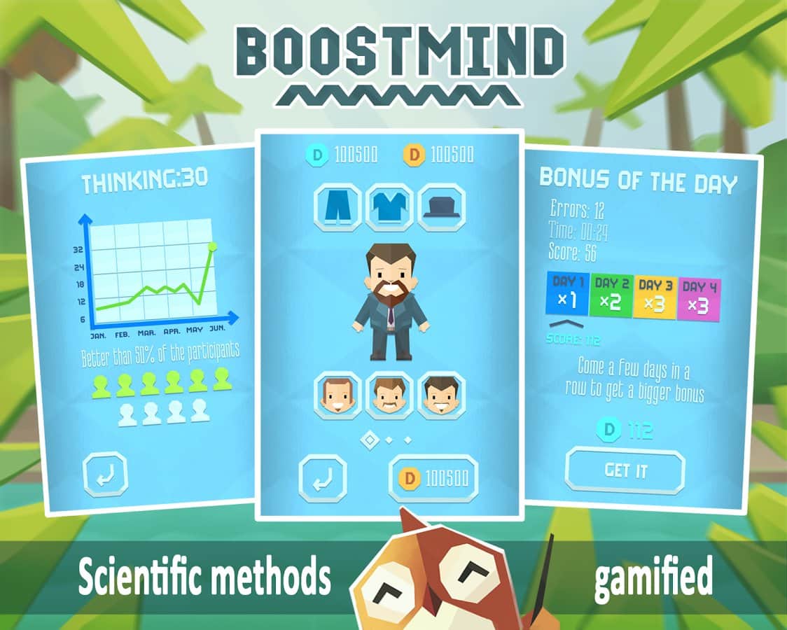 Boostmind - beyin antrenmanı, zihinsel yeteneklerinizi ve zekanızı geliştirecek bir Android bulmacasıdır. Bu oyunda, kişisel antrenörünüzün seçeceği zor görevleri, sayısız bulmacayı ve egzersizleri çözmek zorunda kalacaksınız. Belleğinizi, mantığınızı, düşüncenizi, reflekslerinizi ve günlük yaşamda işinize yarayacak birçok başka yeteneğinizi geliştirmeniz için tasarlanmıştır. Bu oyun hem yetişkinler hem de çocuklar için uygundur; mini oyunlar oynayıp boş zamanınızı eğlenceli bir şekilde geçirirken beyninizi de eğiteceksiniz. Bu oyundaki ilerlemenizi takip edin ve en iyi oyuncularla birinci olmak için liderlik tablosunda kendinizi takip edin.