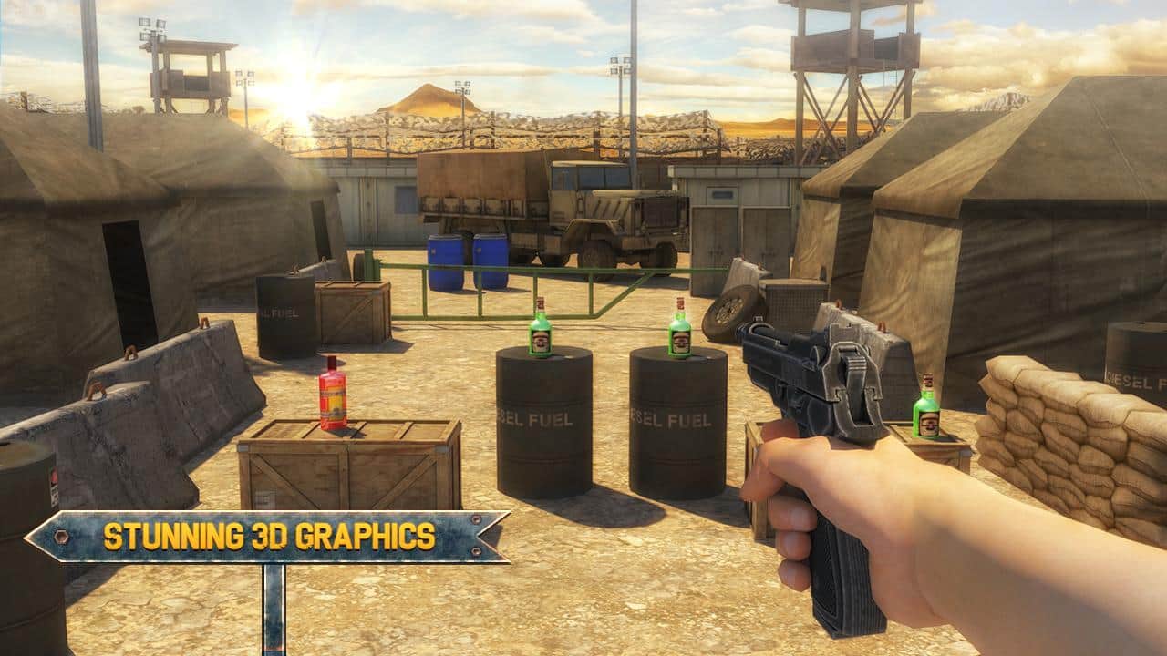 Şişe Atış 3D Oyun Uzmanı – Android için bir oyundur, burada şişelere ateş edeceksiniz. Hedefi nişan alın ve tabancanızın tetik mekanizmasını çekerek şişeleri birer birer kırın. Hedeflere mükemmel atış yeteneklerinizi sergileyin. Parmak ucunuzla ekrana bir dokunuşla hedefi nişan alarak ateş edin. Her yeni seviyede oyunun zorluğu artacak ve hedeflere isabet etmek için oldukça çaba sarf etmeniz gerekecek. Oyunda birçok engel ve hareket eden hedefler eklenilecek. Yeni görevleri keşfedin ve yeterli puanı toplayarak tabanca atışında usta olun.