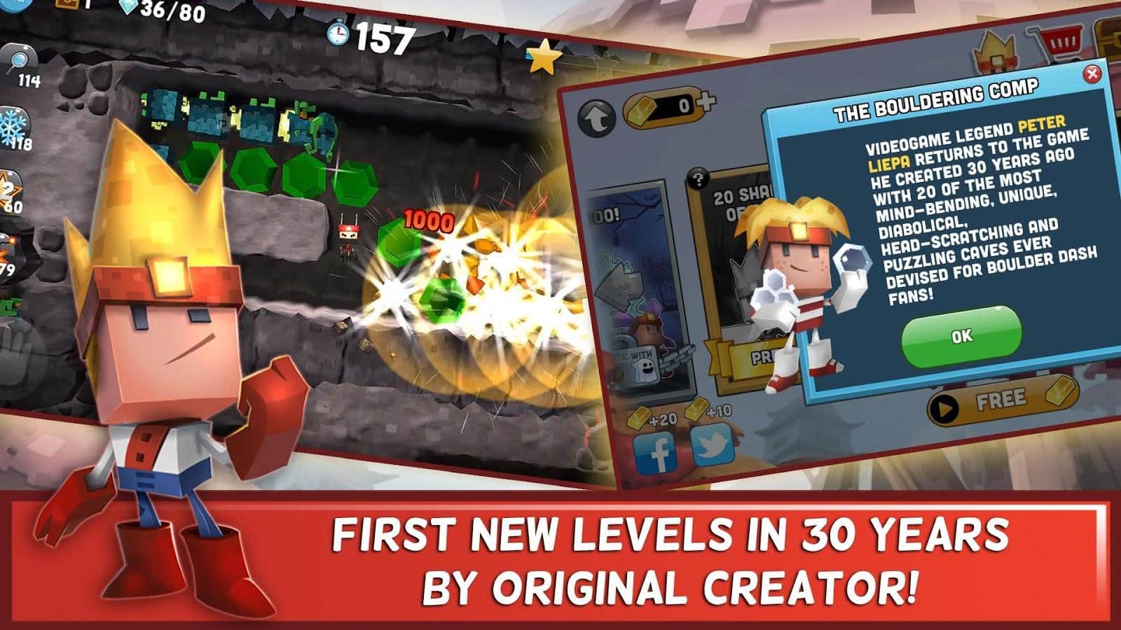 Boulder Dash-30. Yıl Dönümü - birçok farklı görevi çözmeniz gereken, bulmaca unsurları içeren bir platform oyunudur. Hemen şimdi mağarayı keşfetmeye başlayın, değerli taşları toplayın, kendinize yol açın, hain düşmanlardan ve dev taşların düşüşünden kaçının. Hazine sandıklarını ve nadir koleksiyon bonuslarını keşfedin, ayrıca 10 benzersiz dünya ve 9 farklı karakter ile tanışın.