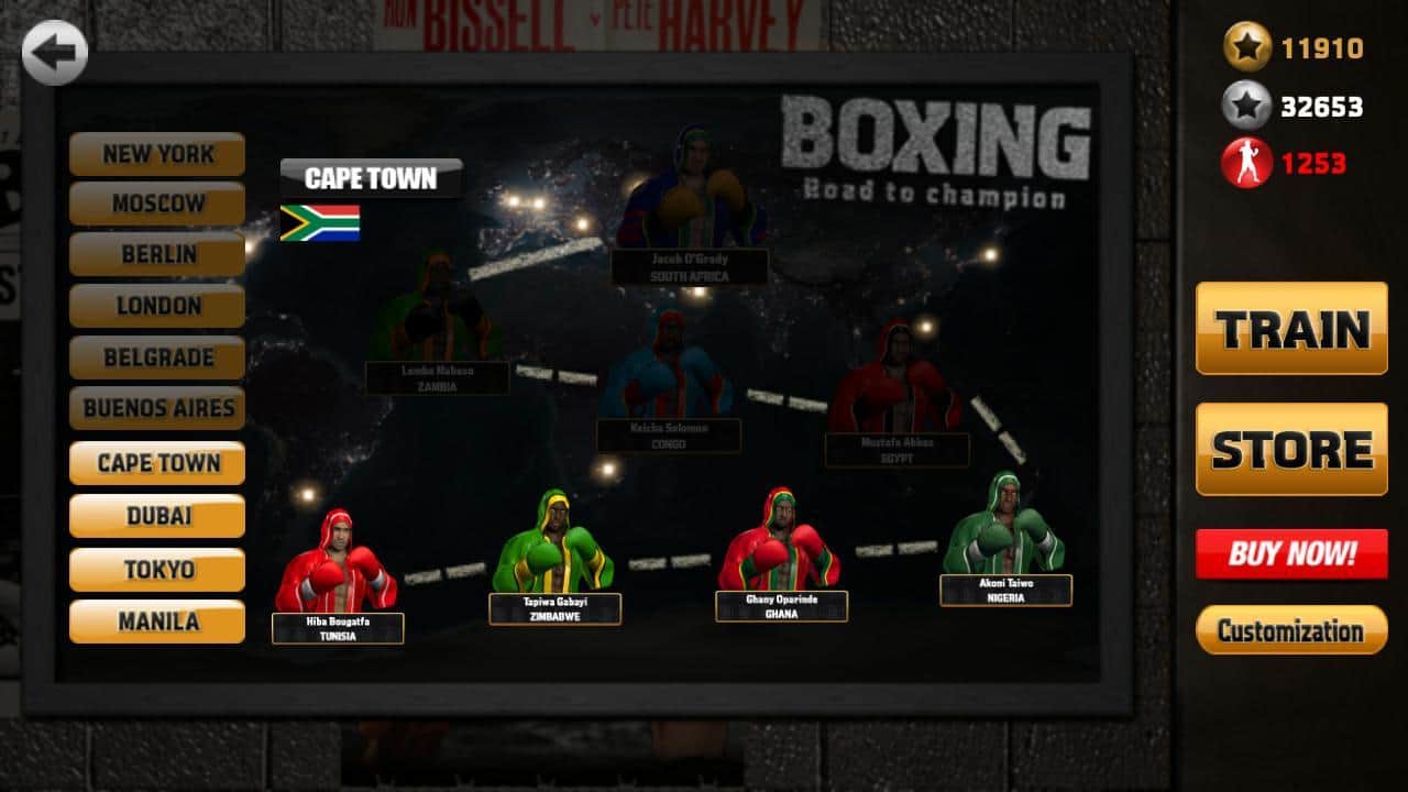 Boks - Şampiyona Giden Yol – dünyanın farklı köşelerinde bulunan birçok dövüşçü ile fena bir boks oyunu değil. Antrenmanları geçin, vuruşları ve kombinasyonları geliştirin, rakiplerinizi ve davranışlarını öğrenin, vuruşlarınızı otomatik hale getirin ve kıtanızın en iyi dövüşçüsü olun. Her dövüşçünün, neredeyse her dövüşçüyü nakavt edebilecek bir süper vuruşu vardır.