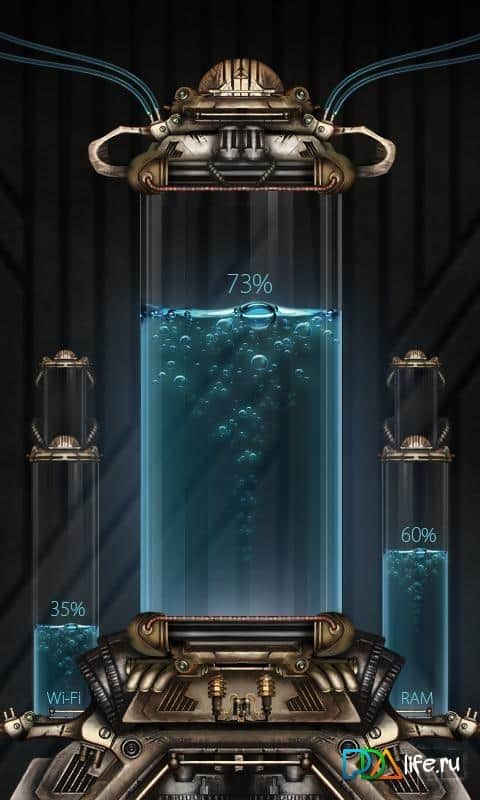 Beyin Batarya Monitörü – Android telefonlar ve tabletler için steampunk tarzında canlı duvar kağıtları. Bu canlı duvar kağıtları sadece ekranınızı süslemekle kalmaz, aynı zamanda batarya şarjını, Wi-Fi veya 3G ve 4G seviyesini ve RAM seviyesini de gösterecektir. Bu duvar kağıtlarını telefonunuza kurduğunuzda, telefonun çeşitli parametrelerini gösterecek sıvı ile dolu birkaç şişe elde edeceksiniz ve içinde gözler ve beyinler yüzeye çıkacaktır. Duvar kağıtları, çeşitli renk çözümleri ve sınırsız ayarlarla sizi memnun edecek. Telefonunuzu şık duvar kağıtları ile süsleyin ve onların alışılmadık görünümü ve dekoratif unsurlarının tadını çıkarın. Duvar kağıtları yatay ve dikey konumu desteklemektedir.