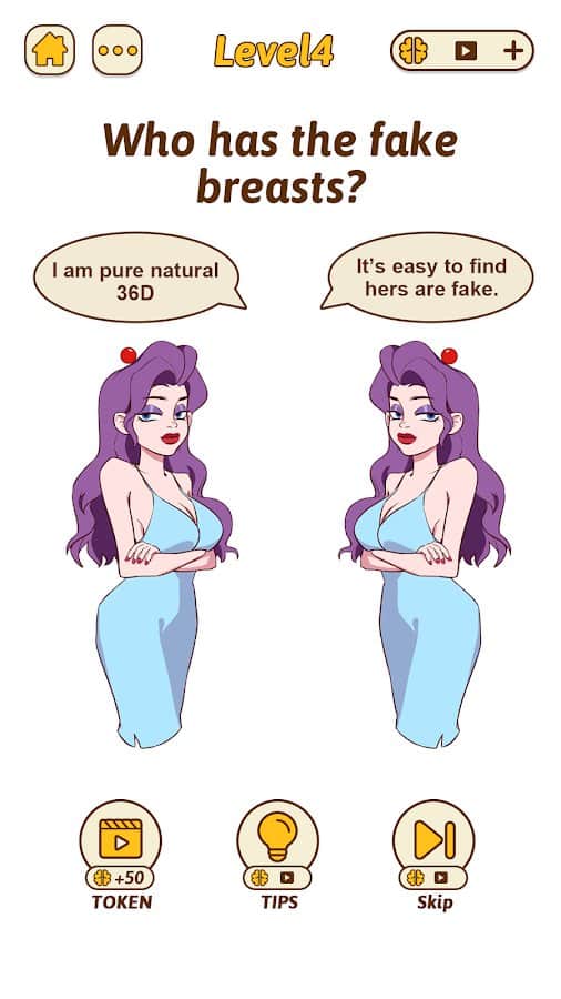 Beyin Hızlanması - Çarpıcı bulmacalarla doğru düşünme yeteneklerinizi çevrenizdekilere sergileyin! Her seviye özel bir hikaye ile dolu, ana karakterlere sorunlarını doğru seçimlerle çözmelerine yardımcı olmalısınız. Sadece sizin eylemlerinizden dolayı kolayca zarar görebilirler, bu yüzden kararlarınızı dikkatle düşünün. Umutsuz durumlarda ipuçları veya seviyeleri atlayın, ancak her zaman beyninizi zorlamaya ve sorunu doğru çözmeye çalışın. Sabırlı olun, eğlenin ve oyundaki rahat atmosferin tadını çıkarın!
