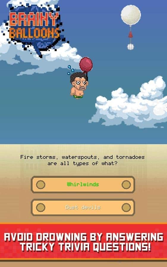 Zeki Balonlar - koşucu ve entelektüel bilgi yarışması unsurlarını bir araya getiren bir oyun. Karakterinizin yaşadığı piksel dünyası su baskını tehdidi altında ve sürekli yükselen su seviyesinden kurtulmanın tek yolu daha yükseğe çıkmak. Kahramanımız, elinde balonlarla tırmanışına başladı, ancak daha yükseğe çıkmak için çeşitli soruları yanıtlamak zorunda. Hikaye detayları hakkında geliştiriciler sessiz kalmış ve bu konuyu oyunculara bırakmışlar. Kahramana sorulan sorular, tarihten pop kültürüne kadar çeşitli yaşam alanlarından geliyor. Elbette belirli yüksekliklere ulaştığınızda ödüller kazanarak yeni kahramanları açma fırsatı gibi gelişim unsurları da mevcut.
