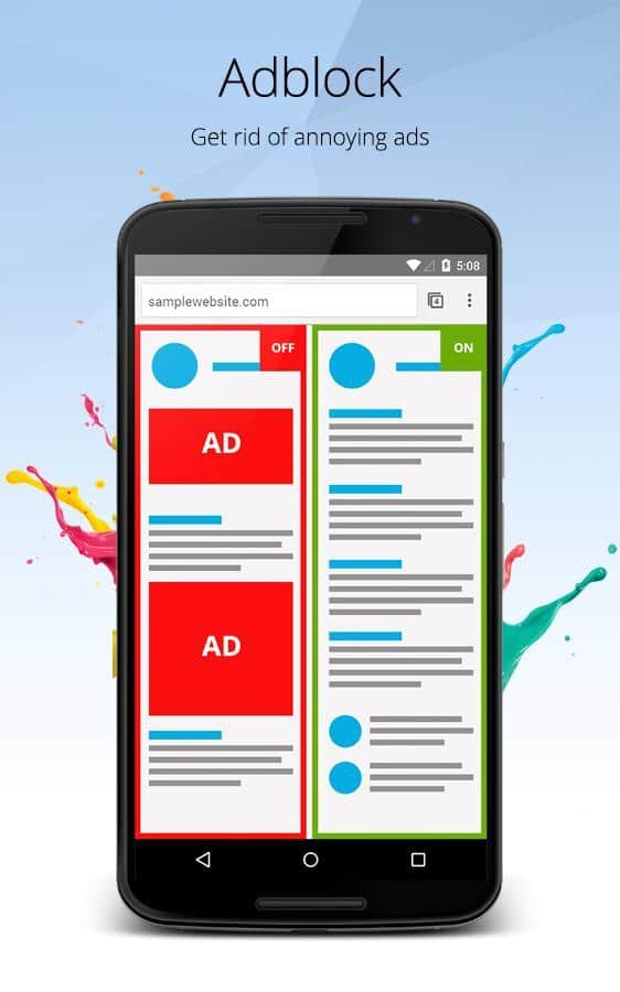 - Yerleşik AdBlock özelliği, rahatsız edici reklamlara engel olmanıza olanak tanır. Genellikle reklam mesajlarının resimler ve videolar içerdiği düşünüldüğünde, ne kadar pahalı veri trafiğinin boşa harcandığını hayal etmek bile korkutucu. Orbitum ayrıca SMS gönderimlerini de engeller.