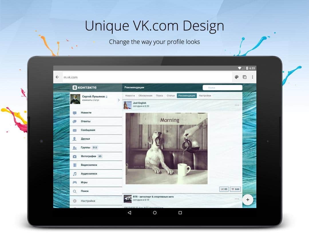 - VKontakte için yerleşik temalar. Artık VK sayfanızı kendi zevkinize göre renklendirebilirsiniz!